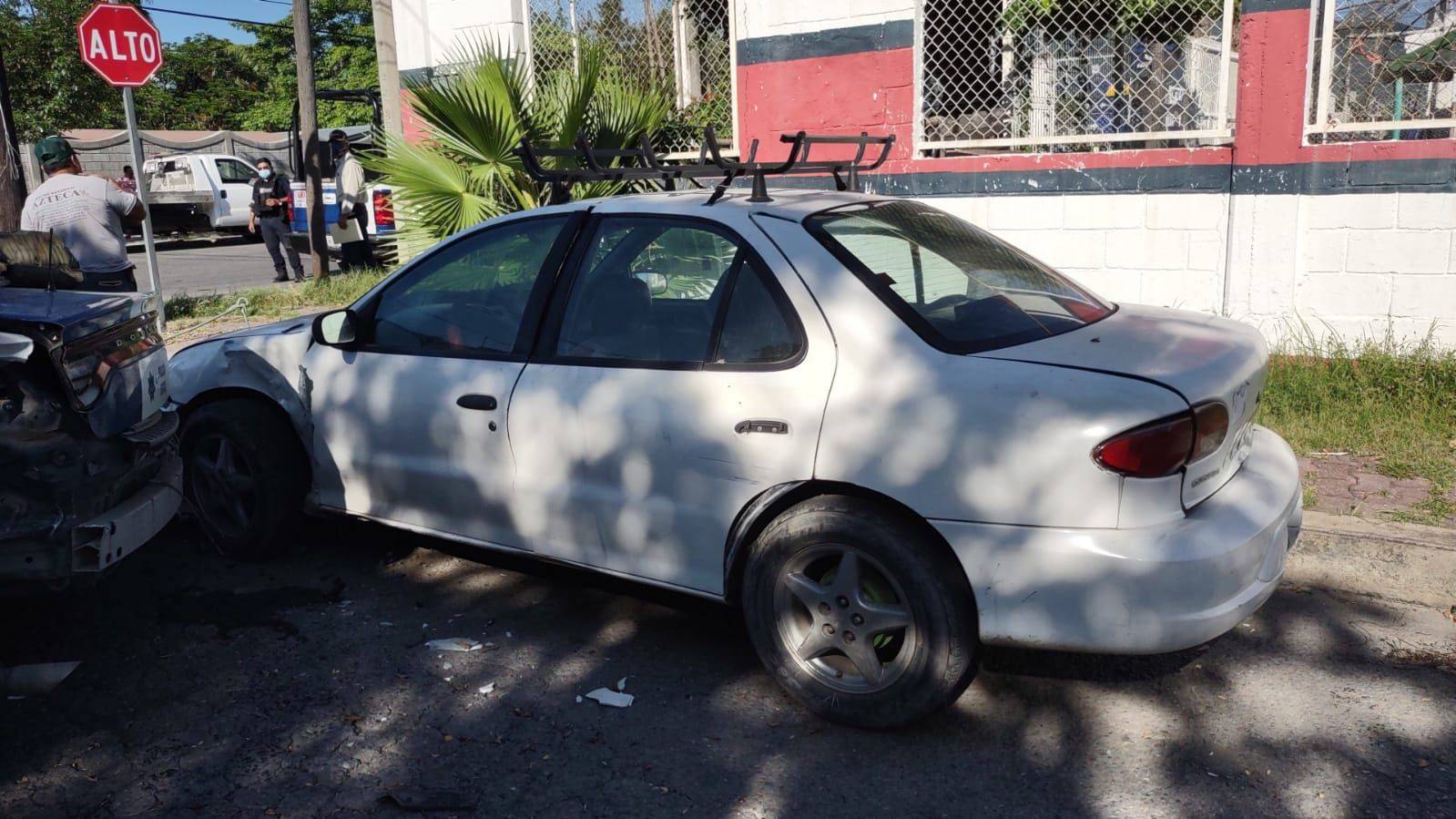 La patrulla después de derribar el poste de concreto se proyecta y choca contra un automóvil marca Chevrolet tipo Cavalier que esta a estacionado, quedando en su posición final la patrulla atravesada en la calle.