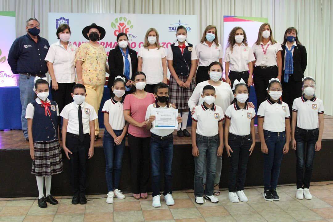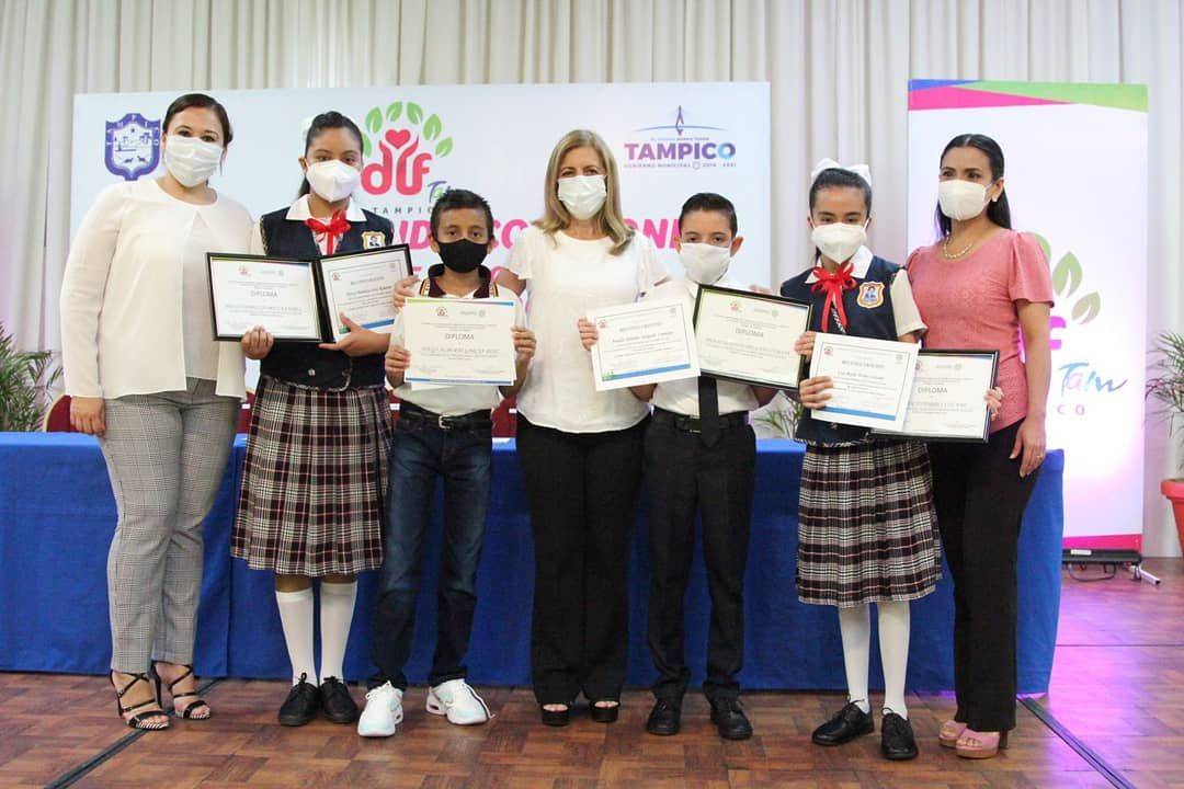 La Presidenta del Sistema DIF Tampico, Aída Féres de Nader llevó a cabo la entrega de reconocimientos a los participantes y premios especiales a quienes obtuvieron lugares a nivel municipal y nacional, consistente en juegos de mesa y una Tableta electrónica