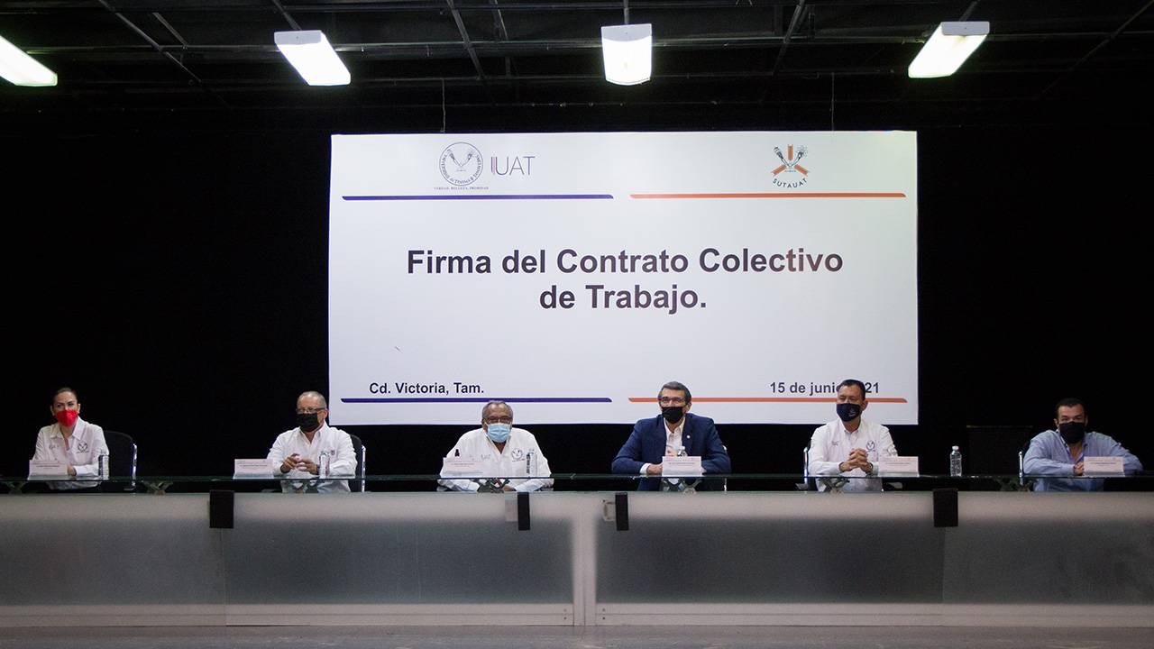La firma del contrato laboral se llevó a cabo ante el Presidente de la Junta de Conciliación y Arbitraje en el Estado, Roberto Rafael Rivas Hernández; el Secretario General de la Junta, Juan Carlos Chávez González, y el Presidente de la Junta Especial Núm. 8 de Ciudad Victoria, Jorge Villareal Robles.