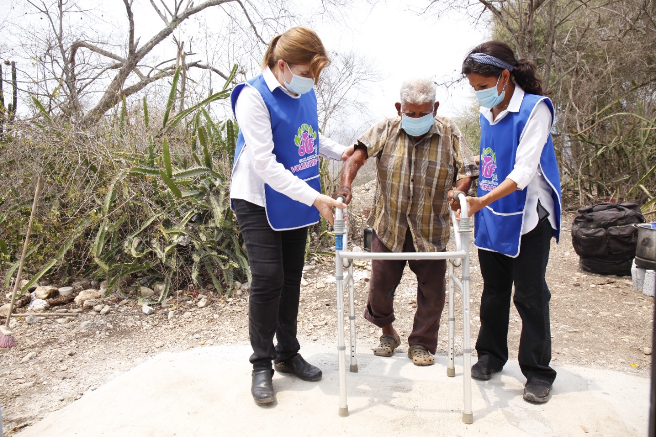 También en el Ejido La Roncha de Antiguo Morelos a Don Reyes Juárez de 91 años y diagnosticado por artritis reumática, debilidad auditiva y debilidad visual, se realizaron trabajos de habilitación de baño, rehabilitación de cocina, instalación de cableado eléctrico, se acondicionaron espacios como apoyo a su discapacidad en la vivienda que comparte con su esposa quien también presenta problemas de salud con hipertensión y diabetes.