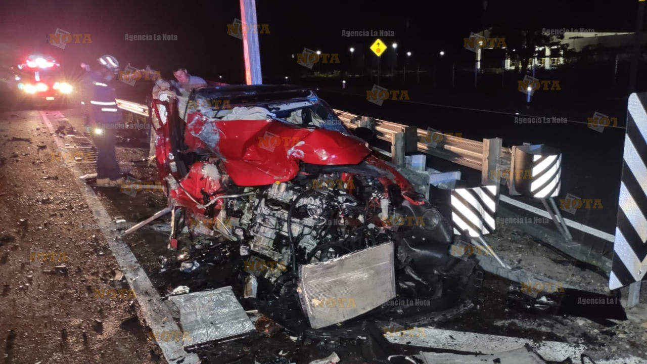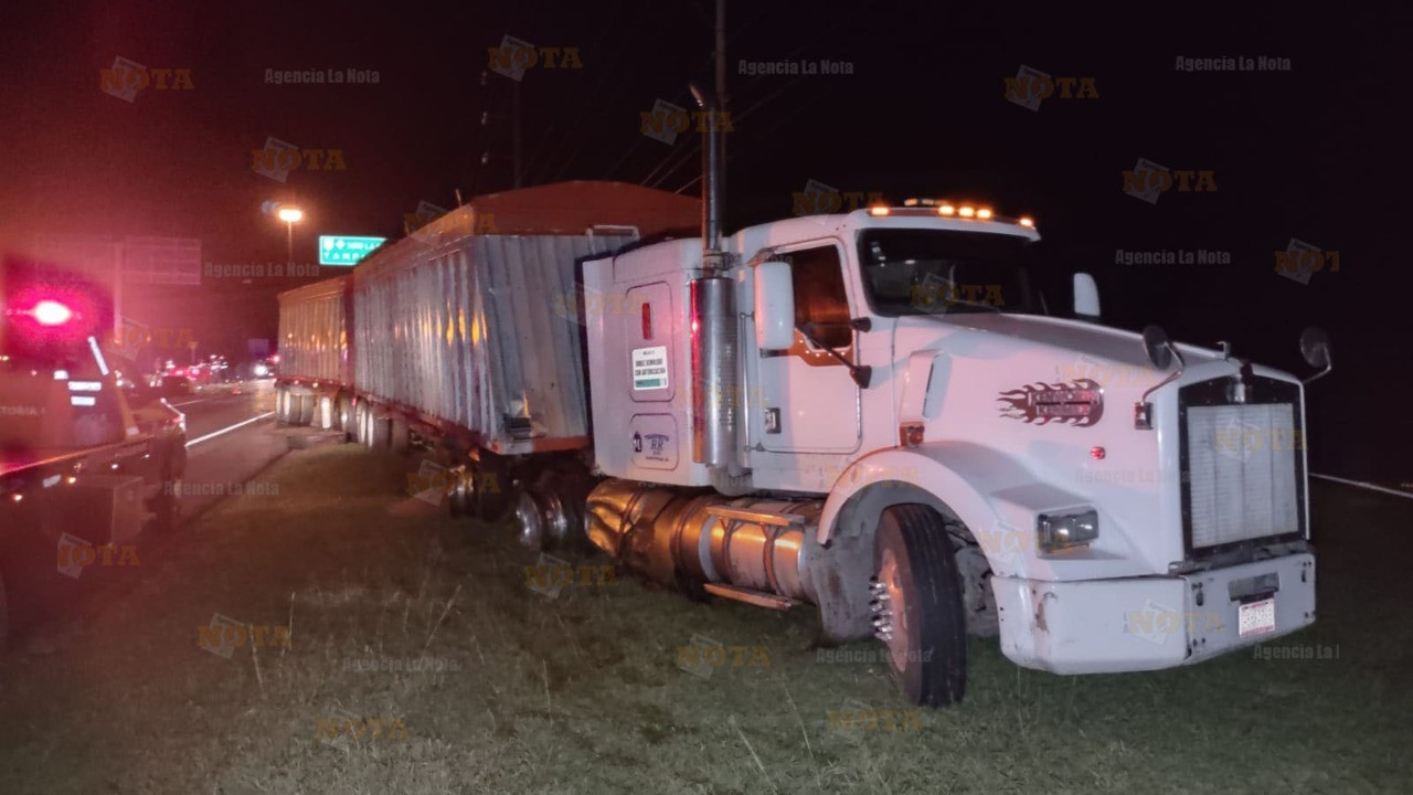 De acuerdo con los datos recabados en el lugar, los ocupantes del vehículo, quienes presuntamente andaban en estado de ebriedad, invadieron carriles contrarios de circulación impactándose de manera lateral contra un tráiler en color blanco que transportaba 2 tolvas.