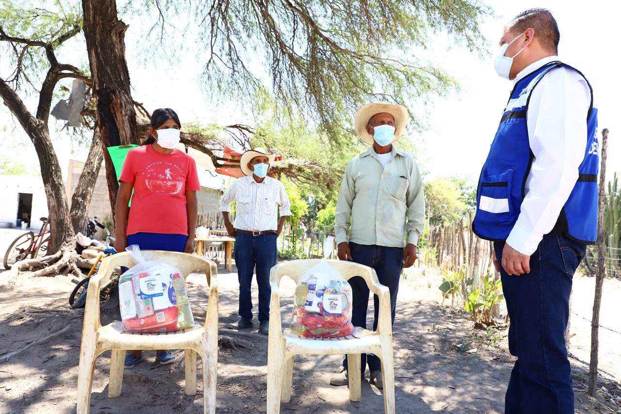 Posteriormente, en Palmillas, el titular de Bienestar Social entregó apoyo alimenticio a familias de ese municipio y estuvo acompañado de Laura Córdova Castillo, alcaldesa del lugar; Edgar Uriel Reyna Rodríguez, director Regional de SEBIEN.