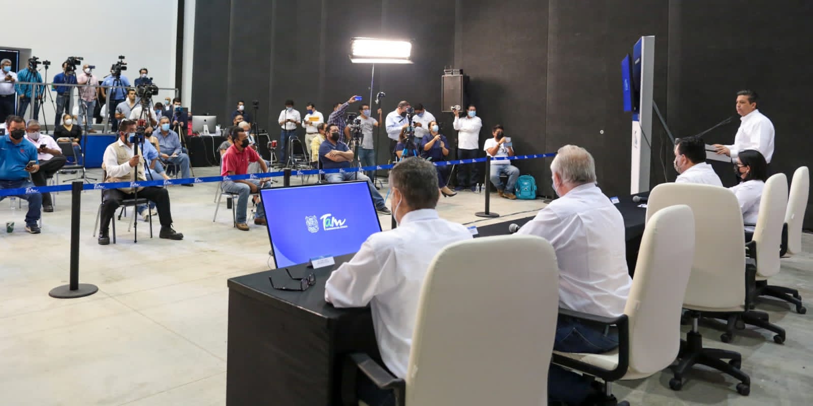 Acompañado por el Secretario General de Gobierno César Verástegui Ostos, el Fiscal General de Justicia del Estado Irving Barrios Mójica, el secretario de Seguridad Pública José Jorge Ontiveros Molina, y la Secretaria Ejecutiva del Sistema Estatal de Seguridad Pública Silvia Maribel Pecina Torres, el Gobernador del Estado desmintió la participación de fuerzas federales en los operativos que se han llevado a cabo en Reynosa, los cuales dijo, han sido llevados a cabo exclusivamente por la secretaría de Seguridad Pública del Estado.
