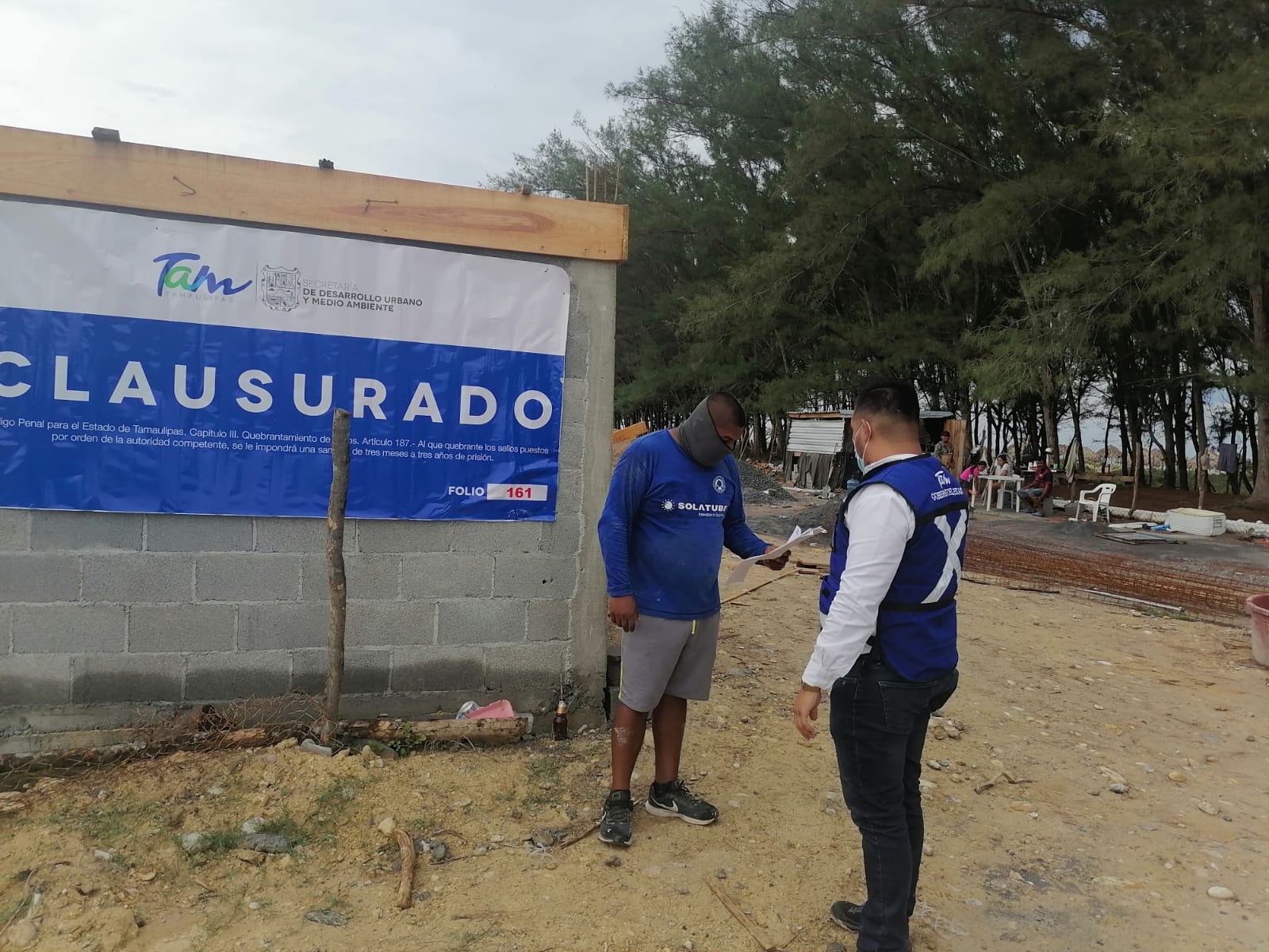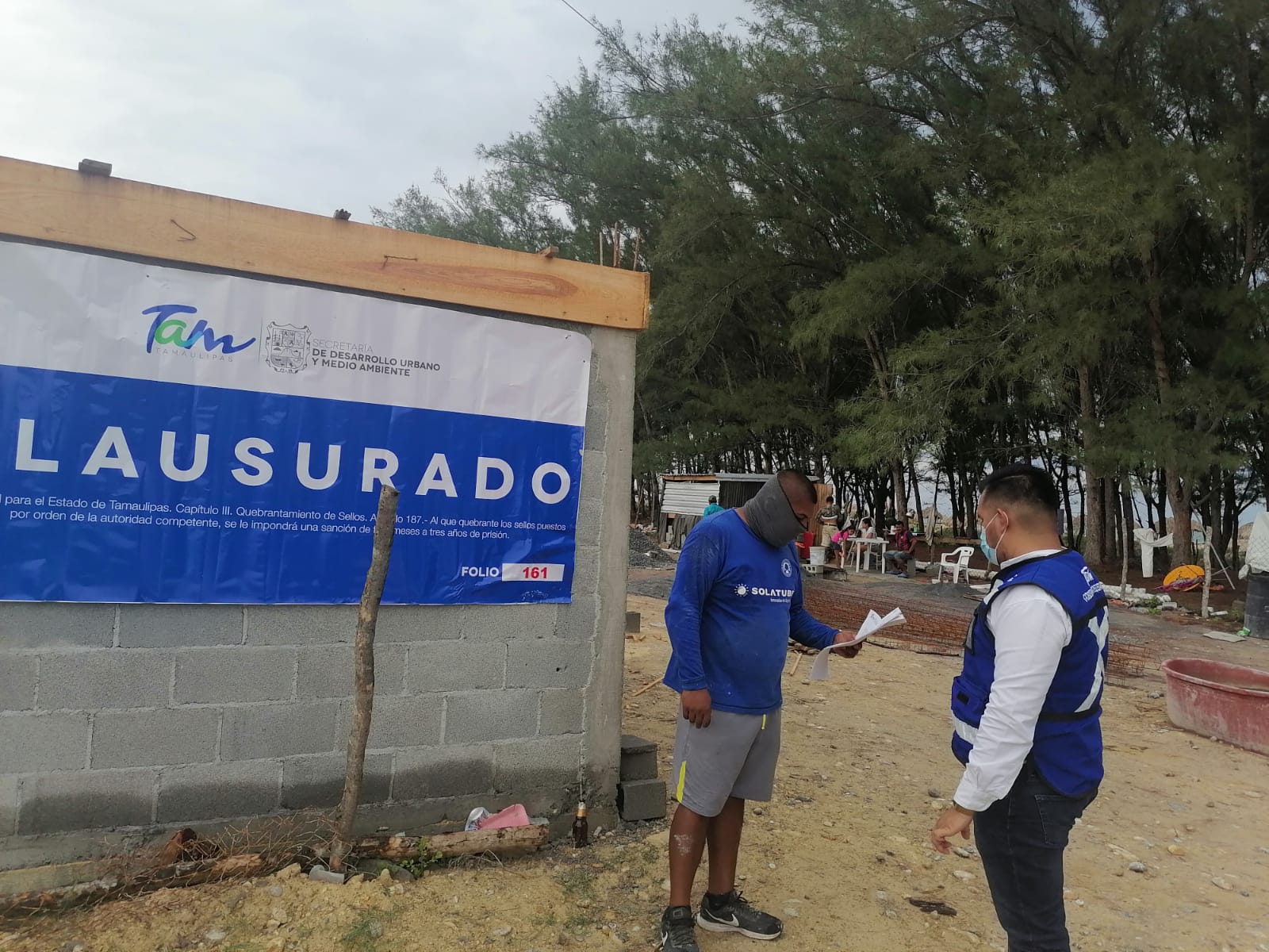 De acuerdo al cumplimiento a lo que establece el Código para el Desarrollo Sustentable del Estado de Tamaulipas, se procedió luego de detectar publicidad que adelantaba la construcción del negocio turístico, por lo que personal estatal intervino de manera oportuna en defensa del medio ambiente, la ecología y la biodiversidad, por lo que se colocaron los sellos de clausura en la obra negra.