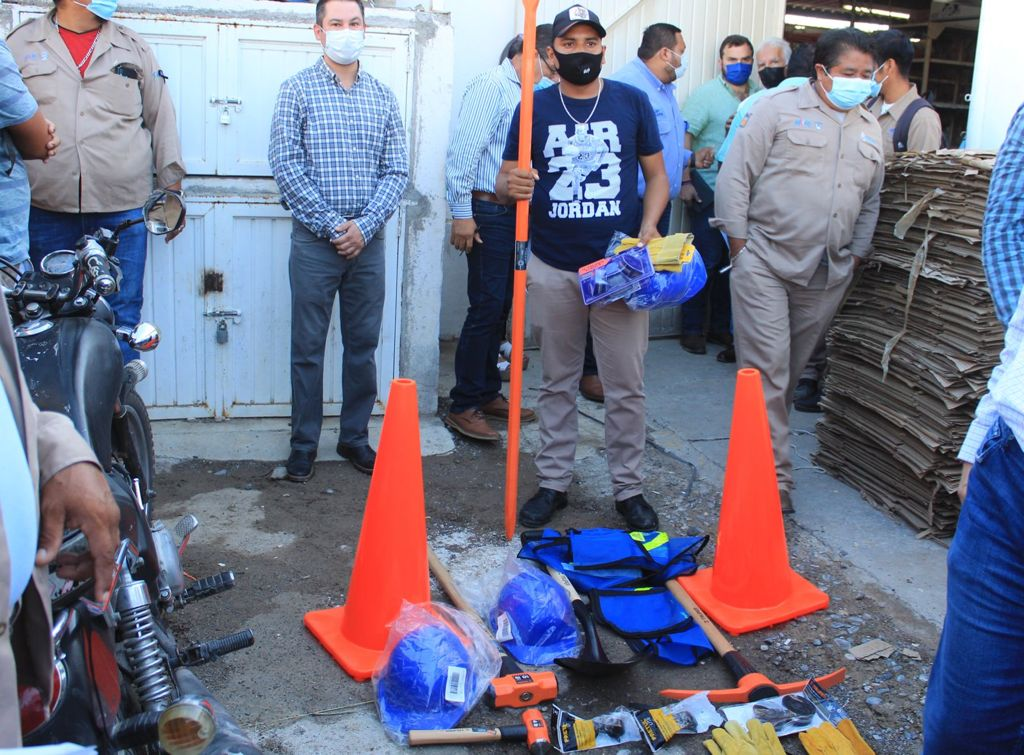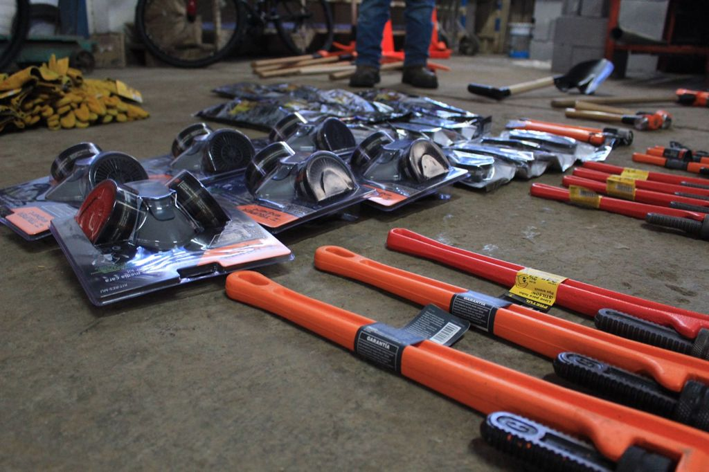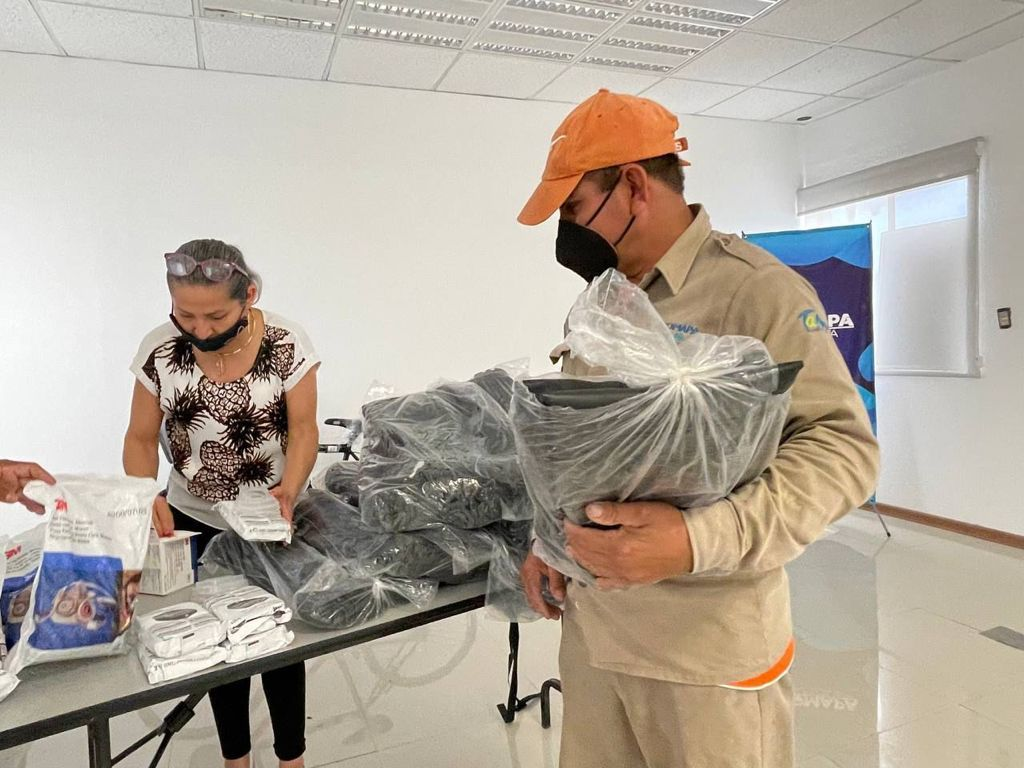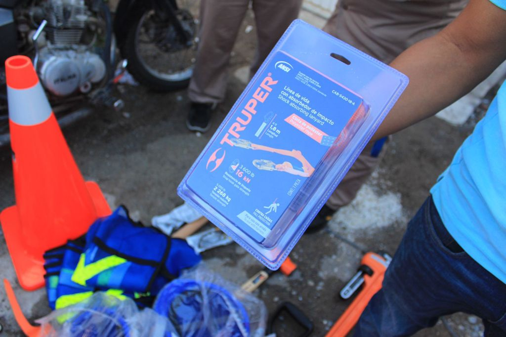 Entre el material entregado se encuentran cascos, guantes, fajas, picos, así como también chalecos, líneas de vida, llaves, palas, marros, además del equipo de seguridad como mascarillas, detector de gases, arneses, lentes, esto para que cada cuadrilla cuente con todo lo necesario.