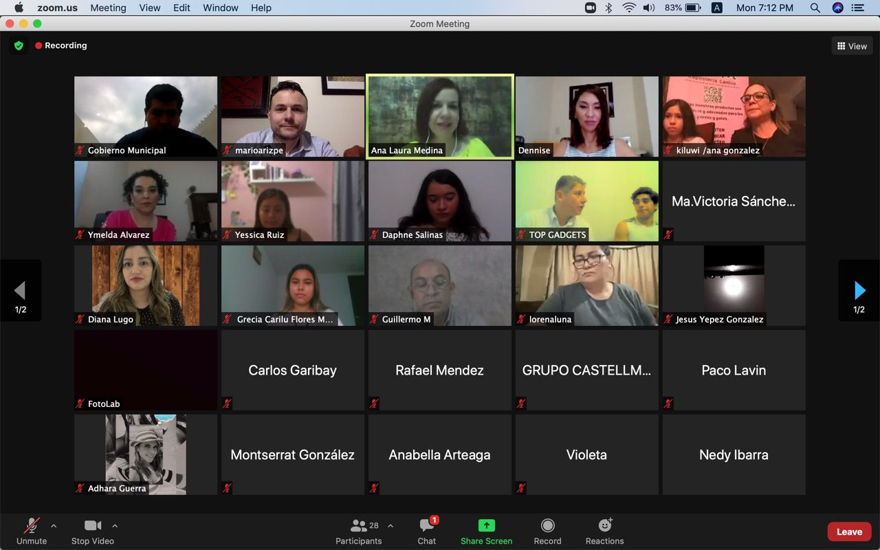 Mario Arizpe Martínez Director de Desarrollo Económico y Turismo Municipal responsable de esta actividad que se realiza los lunes por la noche a través de la plataforma zoom, informó que esta ocasión se registró una participación de 35 jóvenes empresarios y emprendedores locales.