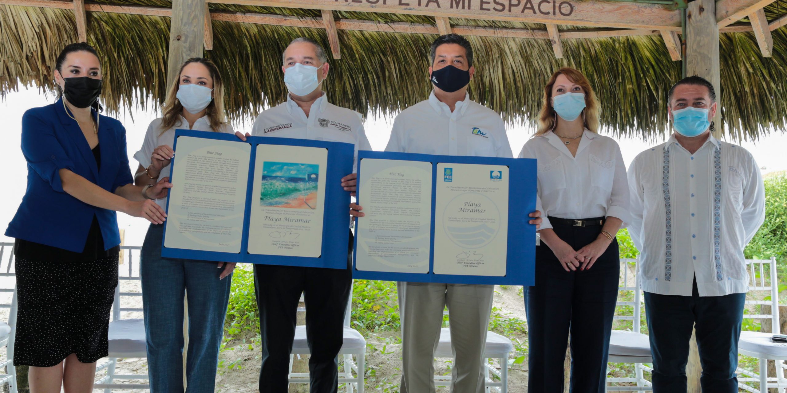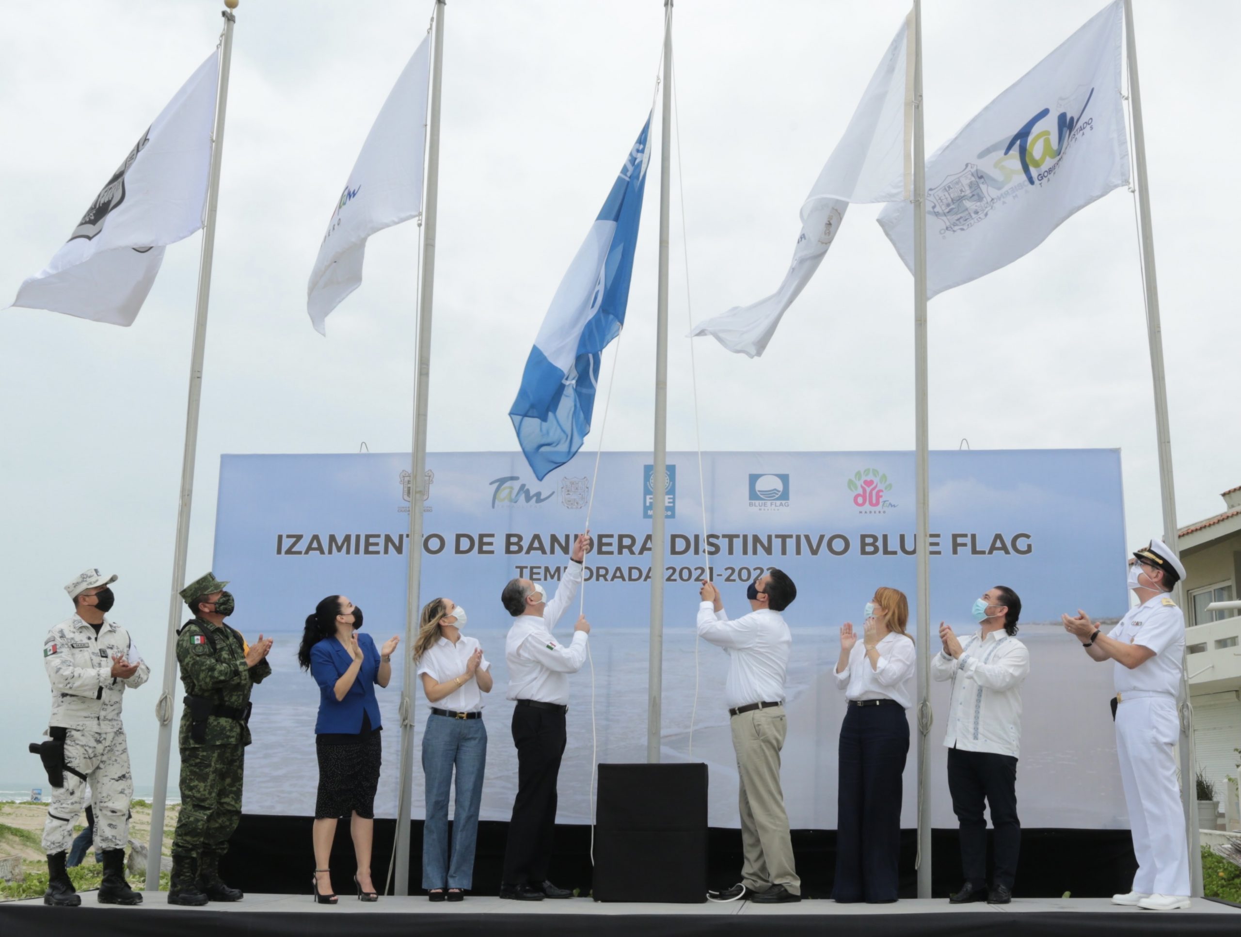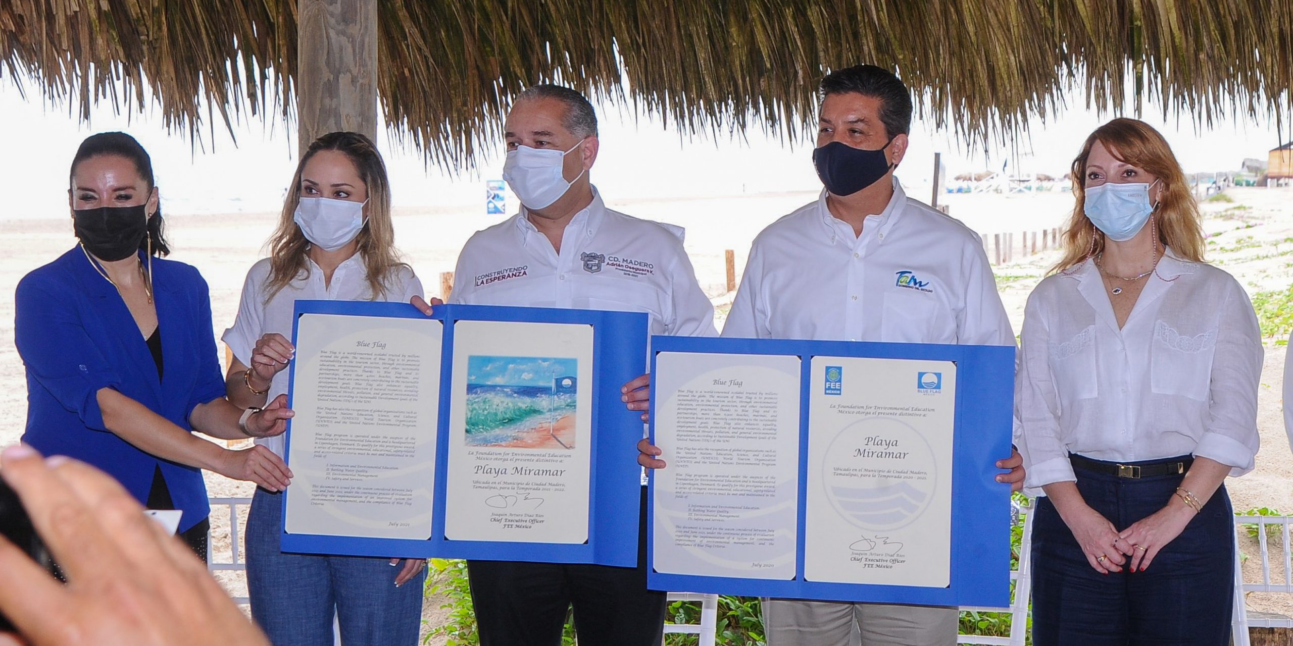 El Gobernador Francisco García Cabeza de Vaca y el alcalde de Madero, Adrián Oseguera Kernion, izaron la Bandera Azul en Playa Miramar, como símbolo del distintivo internacional entregado por la organización ambiental que certificó a este destino por su calidad turística, cuidado del medio ambiente, seguridad, higiene e instalaciones, siendo la primera playa del Golfo de México en conseguir este reconocimiento.