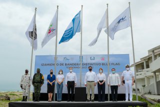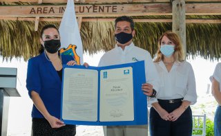 El mandatario dijo “con esta visión de ser la primera playa que contará con este distintivo de Blue Flag en el Golfo de México, entonces ya tenemos dos: la primera playa incluyente y la primera playa que cuenta con Blue Flag”.