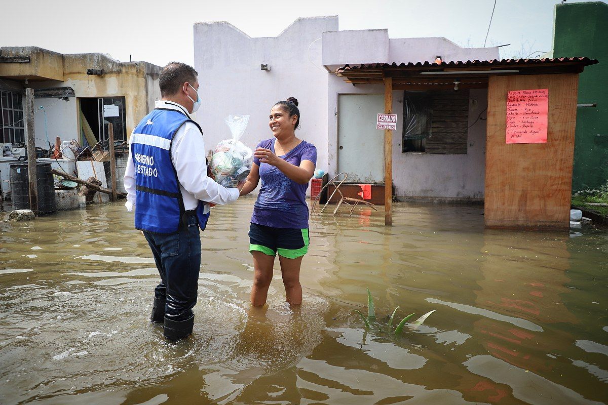 Desde el inicio de la emergencia, personal de la Sebien, encabezadas por su titular, Rómulo Garza Martínez acudió a las zonas afectadas y llevo diversos apoyos a quienes más lo necesitan.