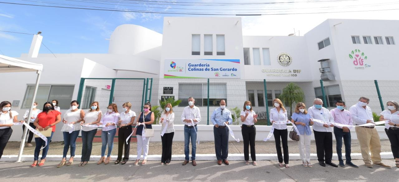 Con el objetivo de ofrecer espacios de cuidado, atención y servicio a la niñez tampiqueña bajo condiciones de mayor seguridad y funcionalidad, el Presidente municipal, Chucho Nader y su esposa Aída Féres de Nader, Presidenta del Sistema DIF, reinauguraron este miércoles la Guardería Infantil del fraccionamiento Colinas de San Gerardo.