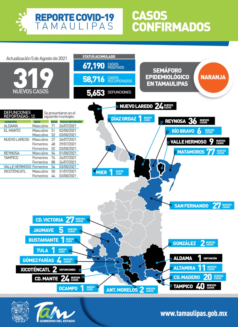La secretaria de Salud de Tamaulipas, Gloria Molina Gamboa, hizo un llamado urgente a la población a quedarse en casa el mayor tiempo posible, reforzar las medidas preventivas tanto en hogar como en los espacios públicos y extremar precauciones con los más vulnerables ante el aumento en los contagios de COVID-19 y la circulación de las diferentes variantes en la entidad. Insistió en la importancia del uso del cubrebocas, respetar la sana distancia, lavarse las manos correcta y frecuentemente para cortar la cadena de transmisión del virus.