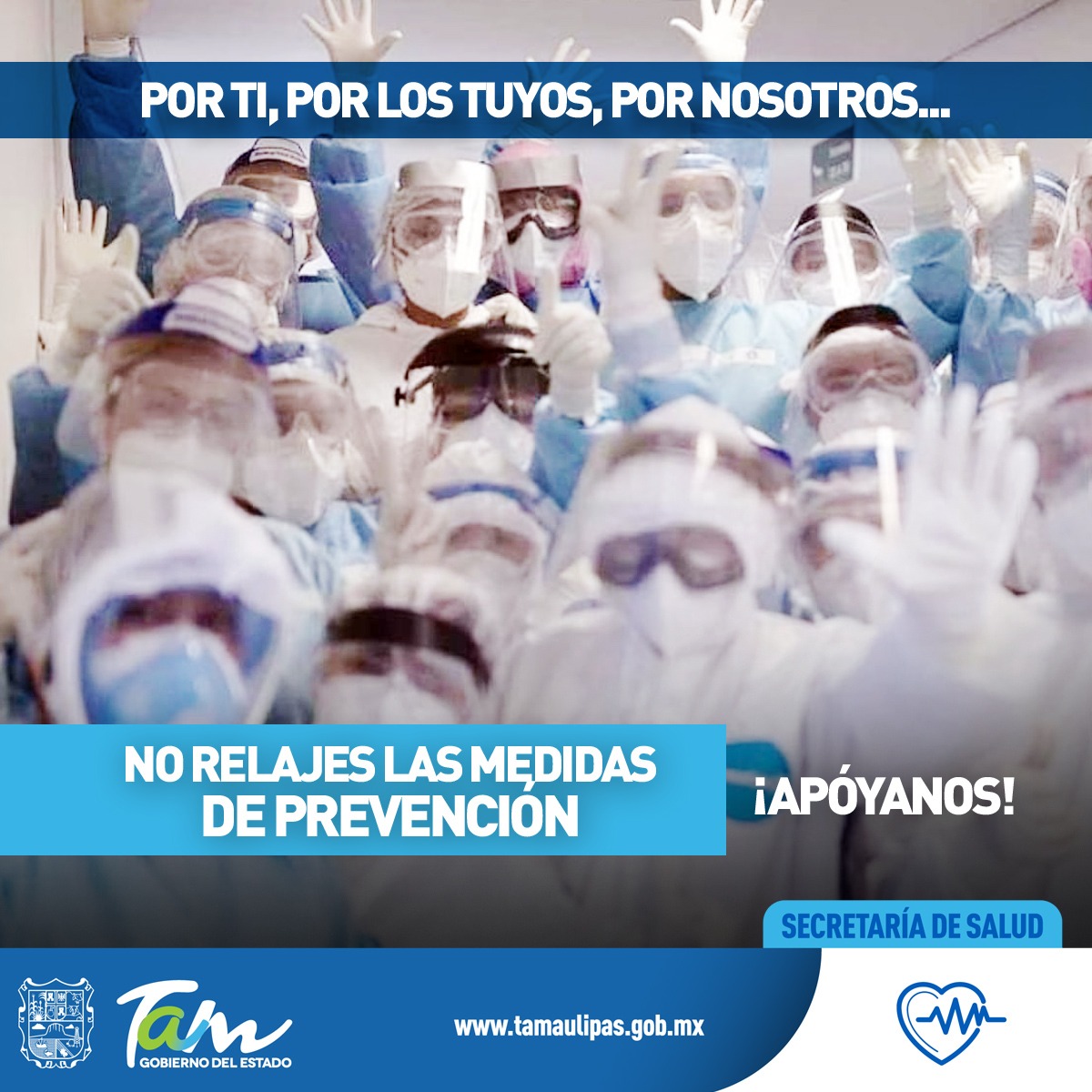 “Por ti, por los tuyos, por nosotros, no relajes las medidas de prevención” destacó Molina Gamboa al convocar a la sociedad a proteger a los héroes de la salud como son los médicos, enfermeras y todo el personal que constituyen la primera línea de defensa contra la pandemia.