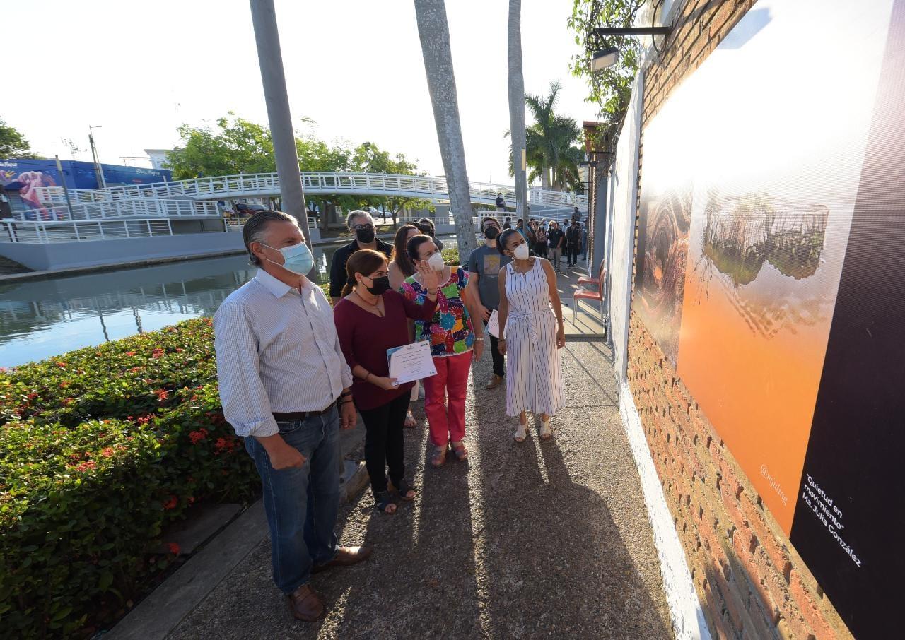 Chucho Nader destacó el talento y enfoque creativo de los artistas, María Julia González, Manolo Barroso, Rosa Elena Gutiérrez, Rubén Darío Sánchez, y Miguel Camero, quienes integran la colectiva que estará en exhibición de manera temporal durante el mes de agosto y septiembre en el Foto Paseo Urbano del Canal de la Cortadura.