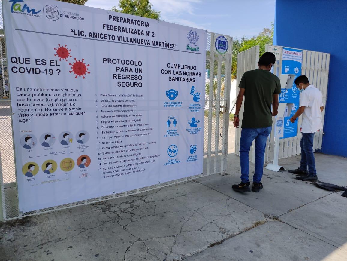 La escuela Preparatoria Federalizada Número 2 Aniceto Villanueva Martínez inició este lunes el regreso a clases presenciales con 134 alumnos en las aulas.