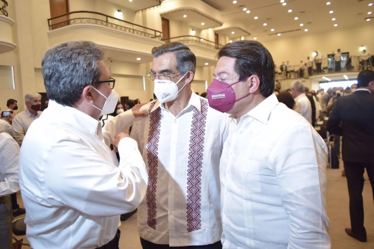 Ante el presidente de la Junta de Coordinación Política de la Cámara Alta, Ricardo Monreal, Mario Delgado, dirigente nacional de Morena, senadores, diputados, alcaldes electos de su partido y representantes de la sociedad civil, Villarreal Anaya, dijo que desde el Senado ha buscado la colaboración con el gobierno del Estado, y a pesar de todo, aun así, los compromisos del gobierno federal se cumplen puntualmente.