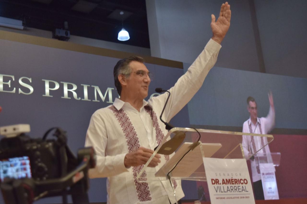 Ciudad Victoria, Tam.- Desde Morena, se logrará un proyecto de unidad y el interés de los tamaulipecos prevalecerá; la transformación es irreversible en el Estado, afirmó el senador Américo Villarreal Anaya, al rendir su tercer informe legislativo, en donde aseguró que por razones políticas, Tamaulipas va en una dirección opuesta a la Cuarta Transformación.