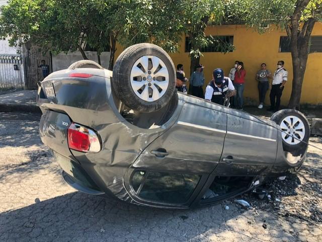 Al ser impactado por el Áltima en el ángulo trasero del lado derecho el automóvil Gol terminó por volcar quedando con las llantas hacia arriba.