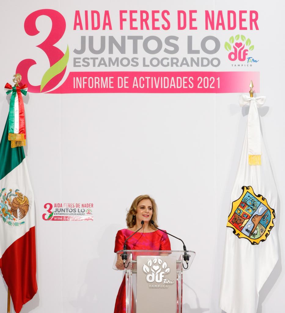 Al rendir su tercer informe de labores correspondientes a la administración 2018-2021, la Presidenta del Sistema DIF Tampico, Aída Féres de Nader señaló que, estar al frente de la institución y participar en la noble tarea de ayudar y servir a los demás, ha sido uno de los grandes privilegios y satisfacciones que le ha permitido la vida.