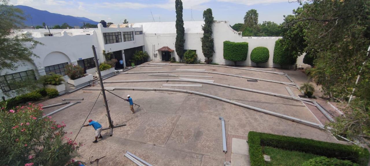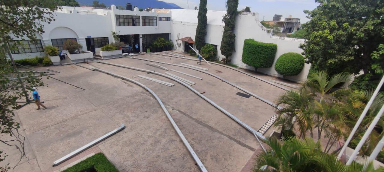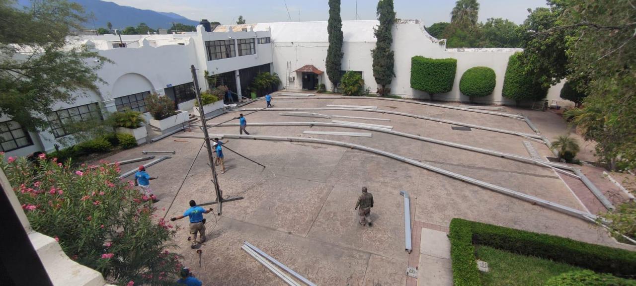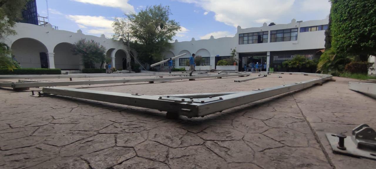 Después de ser declarado recinto oficial, este martes inició la instalación de un gigantesco toldo en la explanada de la Presidencia Municipal para la ceremonia de toma de protesta del alcalde electo Eduardo Gattás Báez.