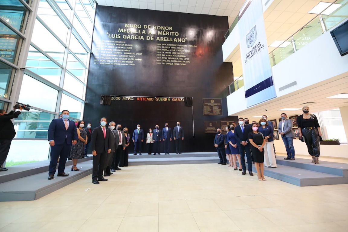 Al término de la sesión, donde se contó con la presencia del Magistrado Horacio Ortiz Renán, Presidente del Supremo Tribunal de Justicia y del Consejo de la Judicatura, se develó en el vestíbulo del Recinto Legislativo el nombre del galardonado, inscrito en letras doradas en el Muro de Honor de la Medalla al Mérito “Luis García de Arellano”.