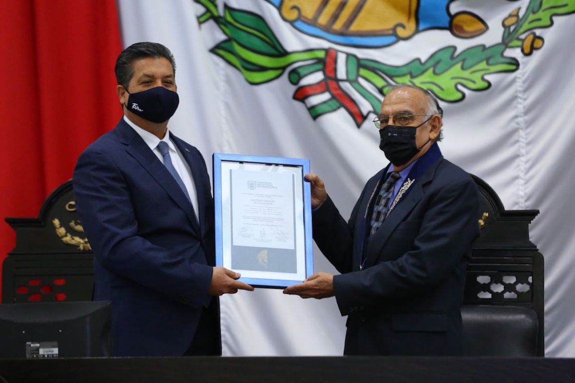 La Medalla al Mérito “Luis García de Arellano” correspondiente al año 2020, fue otorgada al Maestro Artemio Guerra Garza por su destacada trayectoria en el ramo internacional del arte, presea que le impuso el Gobernador del Estado Francisco García Cabeza de Vaca en sesión extraordinaria y solemne del Poder Legislativo.