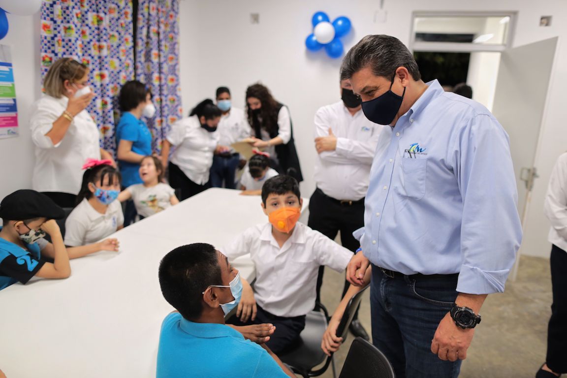 El Gobernador Francisco García Cabeza de Vaca en coordinación con el Sistema DIF Tamaulipas a cargo de la Presidenta Mariana Gómez de García Cabeza de Vaca realizaron la entrega y equipamiento de desayunadores en la Escuela Primaria “Amado Nervo” de la colonia La Pedrera, uno más en la Telesecundaria “Lázaro Cárdenas del Río” en la Estación Colonias y un tercero en el CAM “Samuel Ramos Magaña” de la colonia Jardines de Champayan; con estas acciones se contribuye con apoyos a madres de familia que participan en comités escolares de diversos sectores.