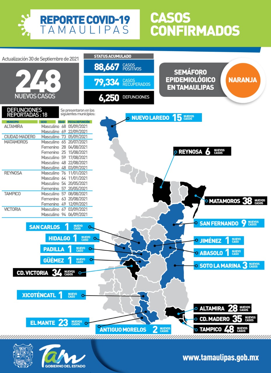 La pandemia de COVID-19 sumó este jueves 248 nuevos casos de COVID-19 y 18 fallecimientos, informó desde esta ciudad capital, la secretaria de Salud, Gloria Molina Gamboa luego de pedir a la ciudadanía atender en todo momento medidas preventivas como el uso del cubrebocas, el lavado frecuente de manos y la sana distancia.