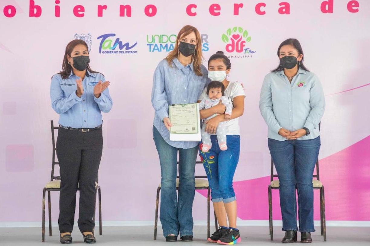 Presidenta Municipal de Cruillas; Gloria de Jesús Molina Gamboa, Secretaria de Salud; Mario Gómez Monroy, Secretario de Educación; María Rita Aguirre Jaramillo, del DIF Municipal y Diana Evelyn Mata Monreal, Directora General del Sistema DIF Tamaulipas.