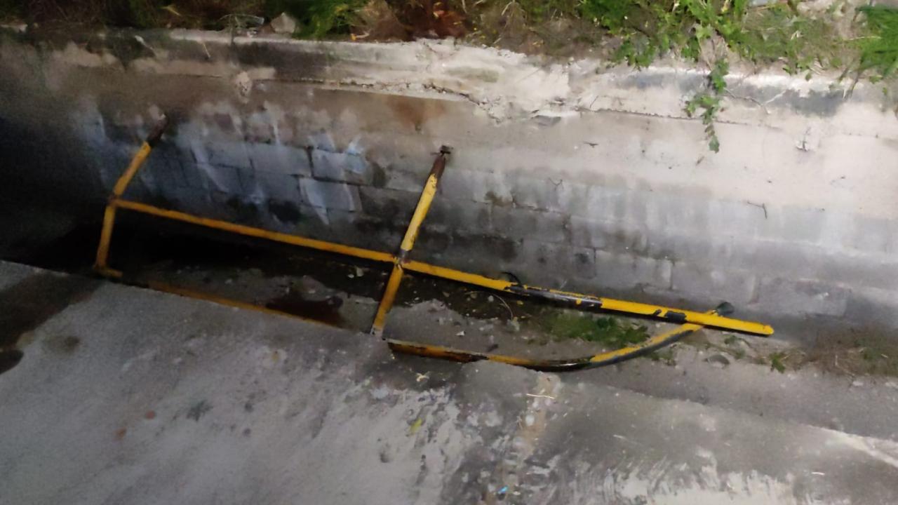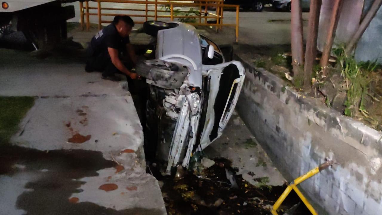 derriba un barandal metálico y el vehículo terminó por caer a un dren pluvial.