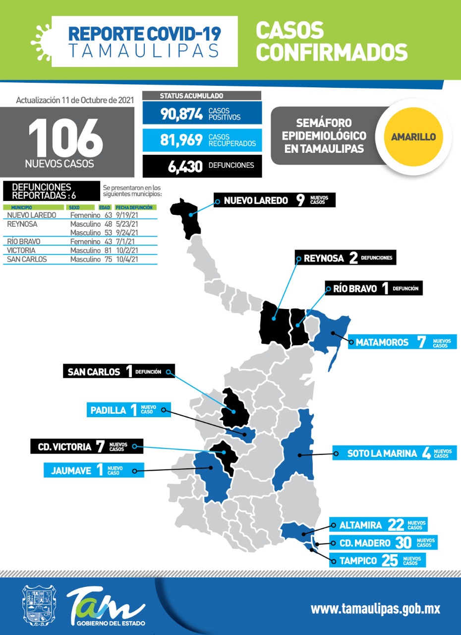Añadió que durante las últimas 24 horas se confirmaron 106 nuevos casos y 6 fallecimientos, por lo que insistió en atender las medidas de prevención ya conocidas como el uso del cubrebocas, la sana distancia y el lavado frecuente de manos para continuar con el descenso en el número de contagios y defunciones.