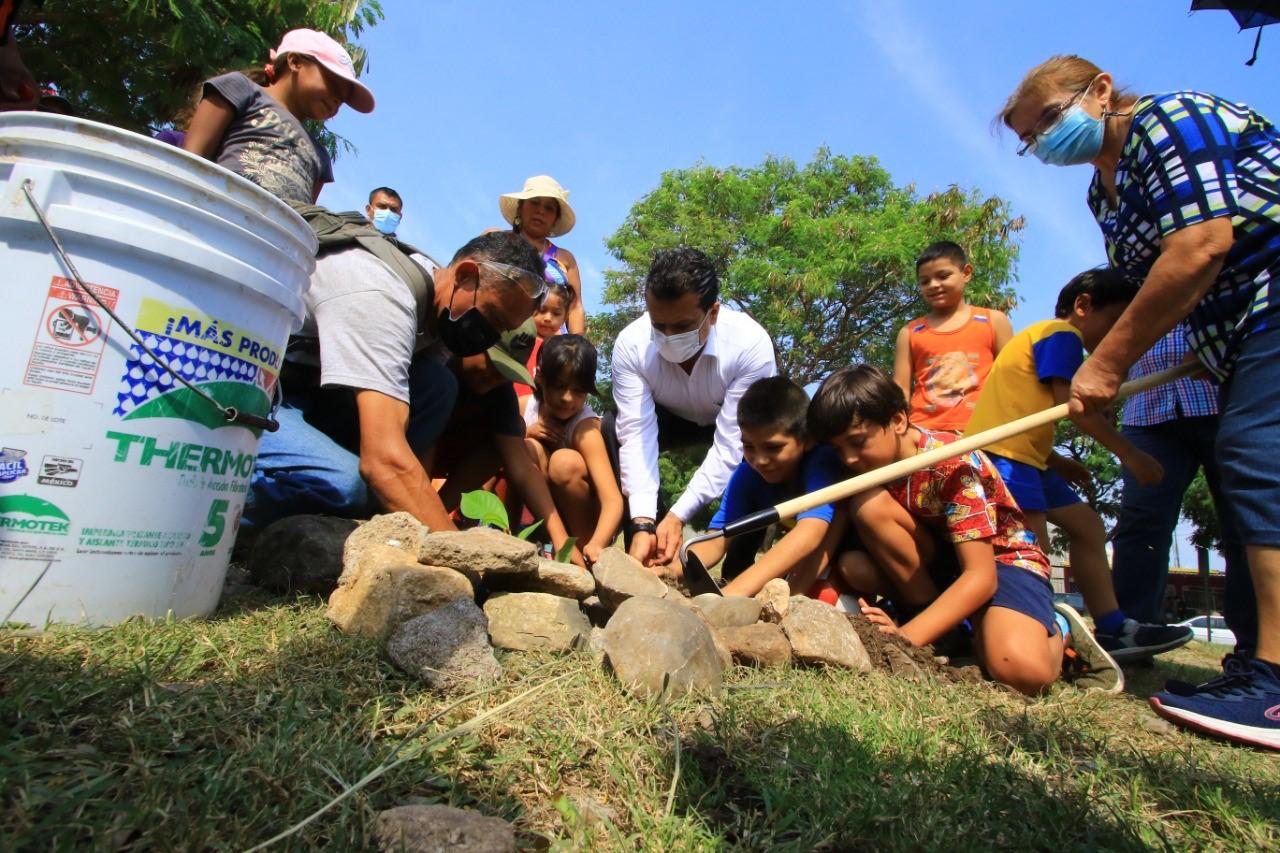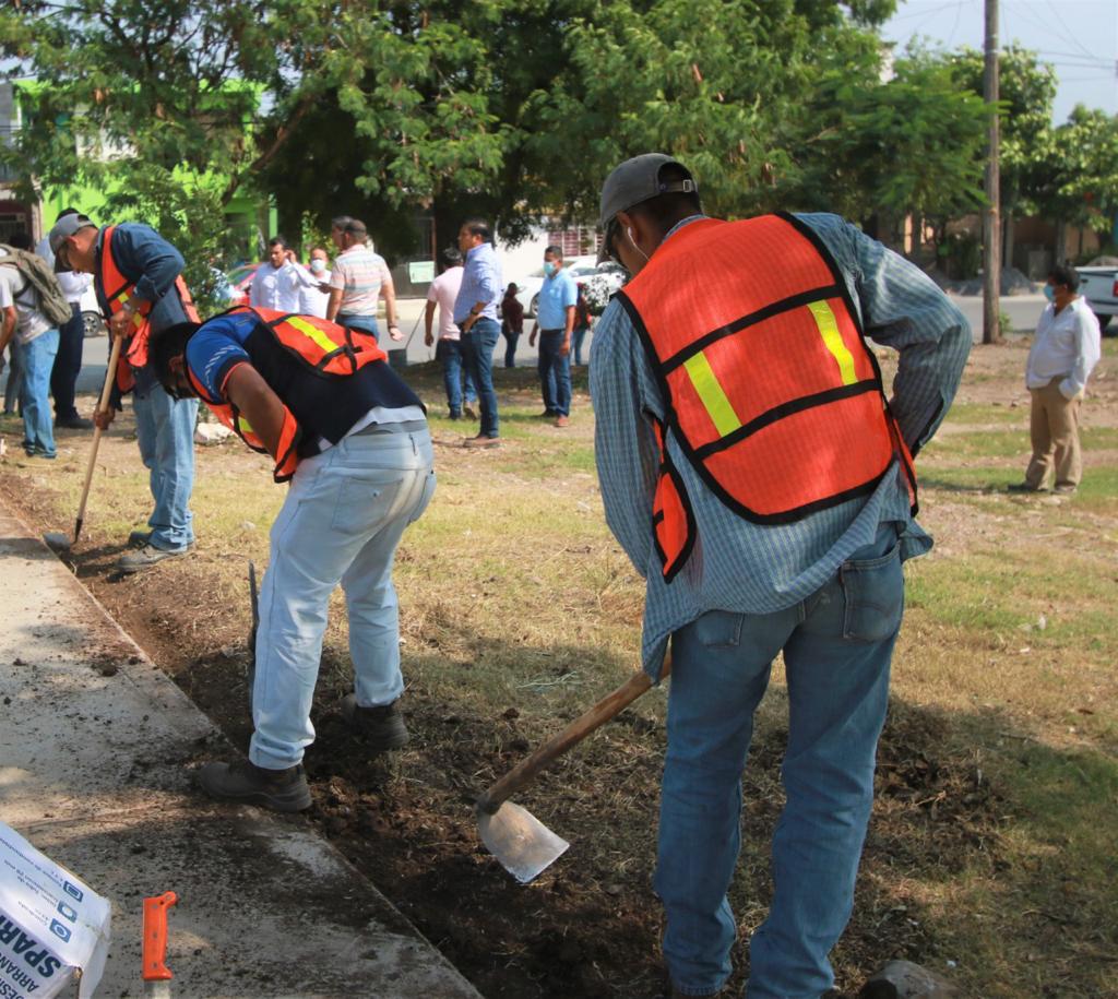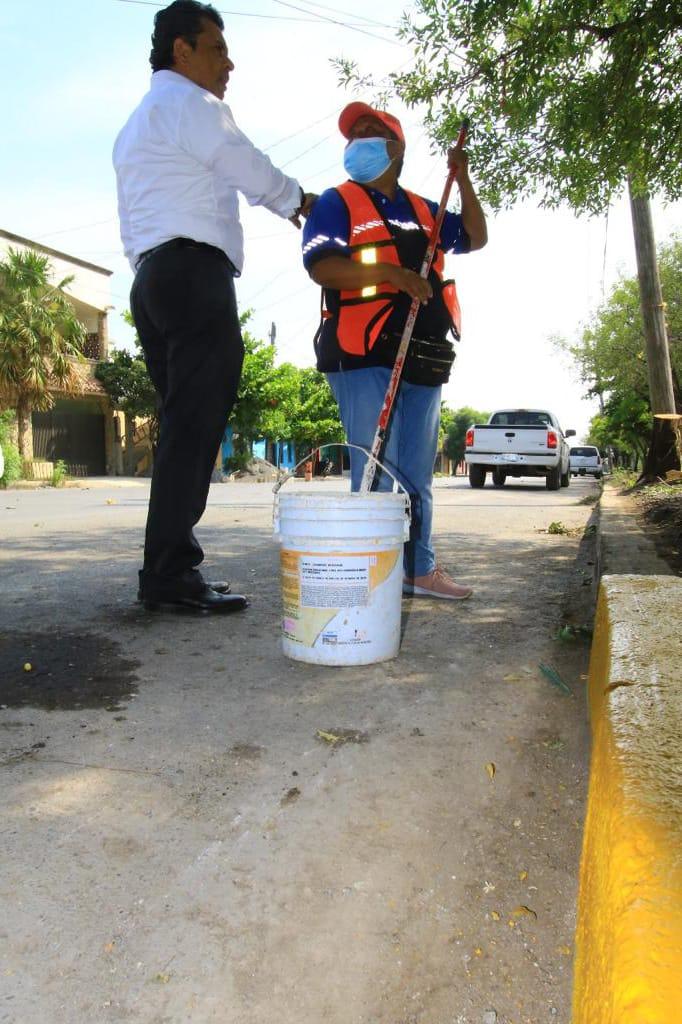 Acompañado del secretario de Servicios Públicos del Municipio, Mauricio Valdez Sánchez, y del grupo de familias supervisó cada una de las tareas realizadas en el área verde donde activo una campaña de reforestación, reinauguro canchas deportivas y dotó de herramienta al personal de servicios públicos.