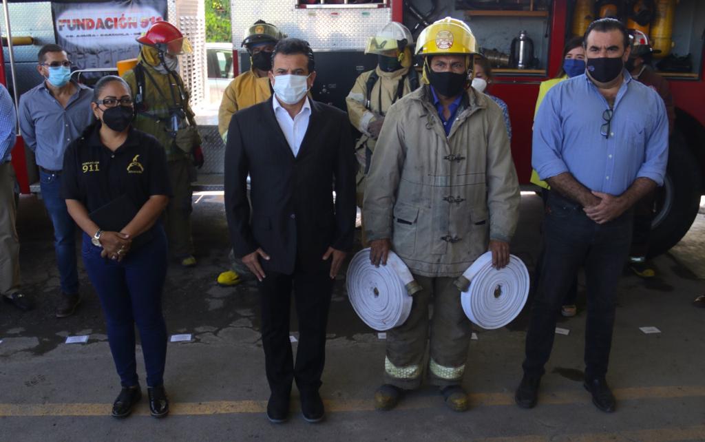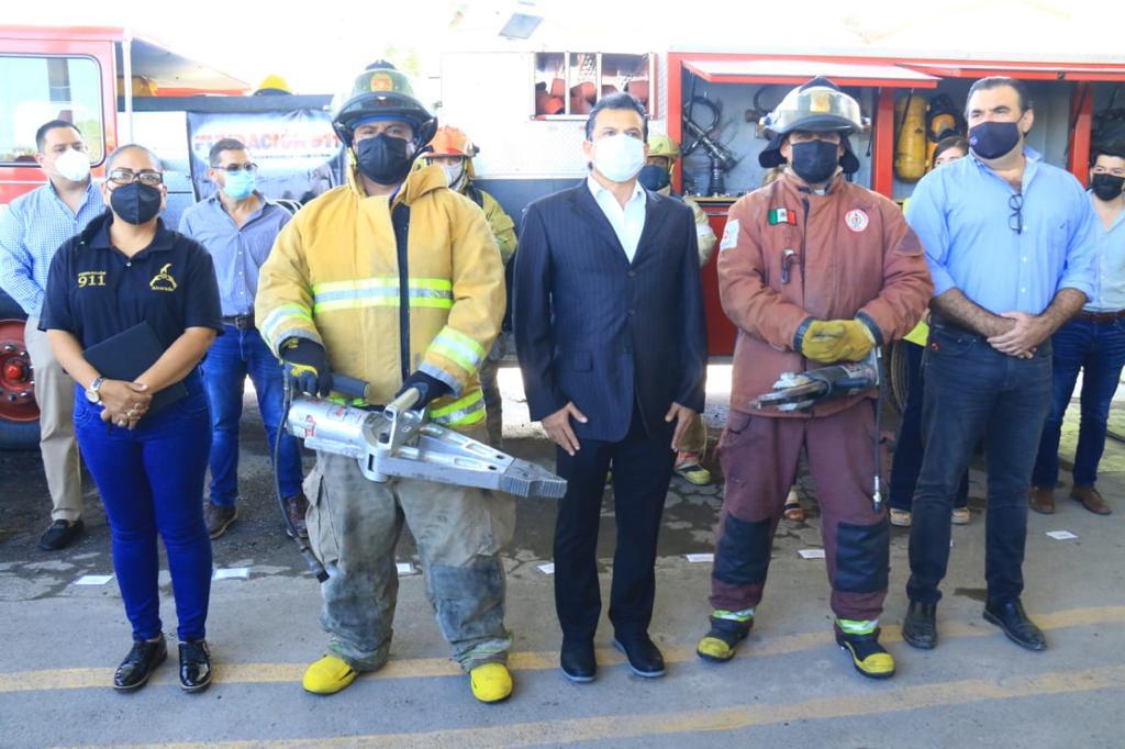 En las instalaciones de Protección Civil Municipal se entregaron dos equipos de respiración de circuito abierto, máscara panorámica y herramienta hidráulica que consta de separadores y cortadores, manguera contra incendios de más de cien pies, espaldera con válvula a demanda y dos barras estabilizadoras para maniobras de rescate vehicular.