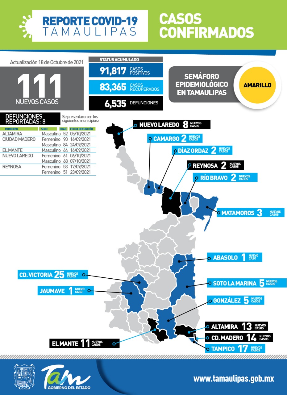 Con el reforzamiento de estas medidas, dijo, se pueden prevenir brotes en aquellos lugares y municipios en los que no se ha incrementado de forma sustancial la actividad epidémica, de ahí la importancia de atender en todo momento las disposiciones emitidas por el Gobierno de Tamaulipas a través del Comité Estatal de Seguridad en Salud.
