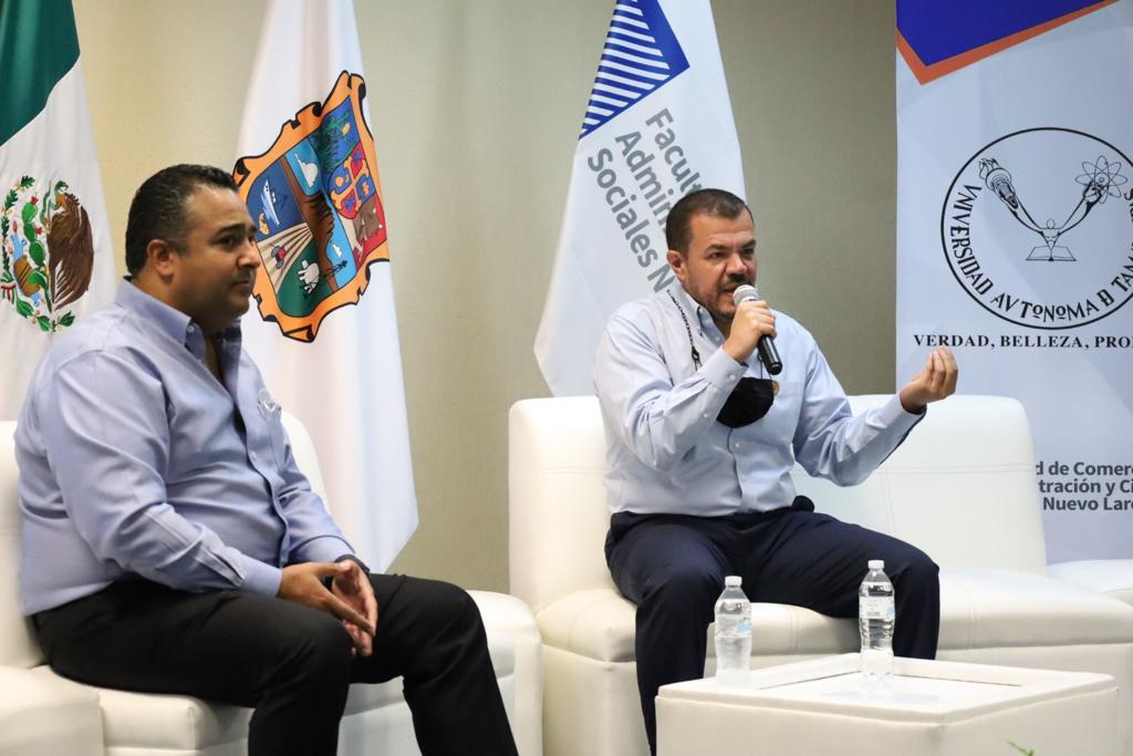 Como Rector Electo de la Universidad Autónoma de Tamaulipas (UAT), el contador público Guillermo Mendoza Cavazos se reunió con los universitarios de la Facultad de Comercio, Administración y Ciencias Sociales de Nuevo Laredo (FCACS), con lo cual dio inicio a los recorridos que efectuará por las facultades, unidades académicas y escuelas para conjuntar el proyecto que encabezará en la máxima casa de estudios de Tamaulipas durante la gestión rectoral 2022-2025.