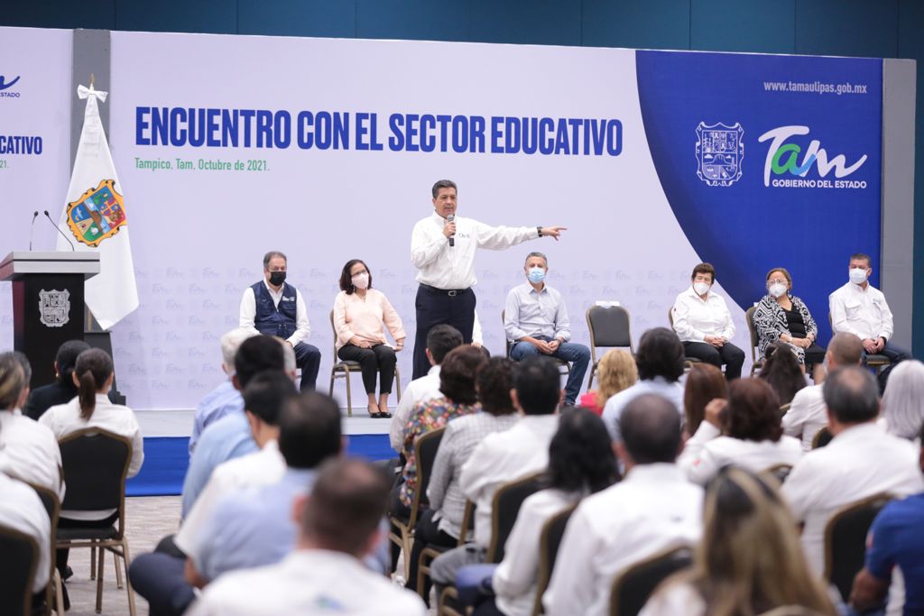 Durante el encuentro con el sector educativo estuvieron presentes el Secretario de Educación, Mario Gómez Monroy, la Supervisora de Escuelas Secundarias Generales de la Zona 8, Alejandra Sánchez Sánchez, la Jefa del Sector 18 del Nivel Primaria, Ausencia Flores Montiel, la Jefa del Sector 3 Preescolar, María Esther Torres Ramírez, el alcalde de Tampico, Jesús Nader Nasrrallah, la representante de Gobierno del Estado en la Zona Sur, Mtra. Magdalena Peraza Guerra, el Asesor de Oficinas del Gobernador, Rómulo Garza Martínez, además de jefas de sector, supervisoras escolares, docentes de preescolar, primaria, secundaria, telesecundaria, educación física, niveles especiales e inglés.