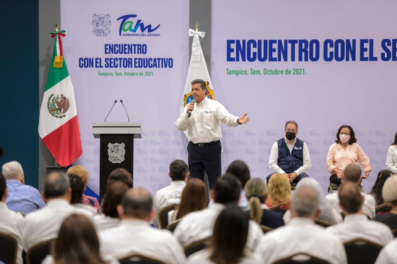 El Gobernador Francisco García Cabeza de Vaca reconoció el esfuerzo realizado por el magisterio de Tamaulipas tras los retos presentados ante la pandemia del COVID-19, así mismo refrendó su voluntad política para escuchar a diversos sectores de la población con el objetivo de presentar alternativas con soluciones a sus inquietudes o propuestas.