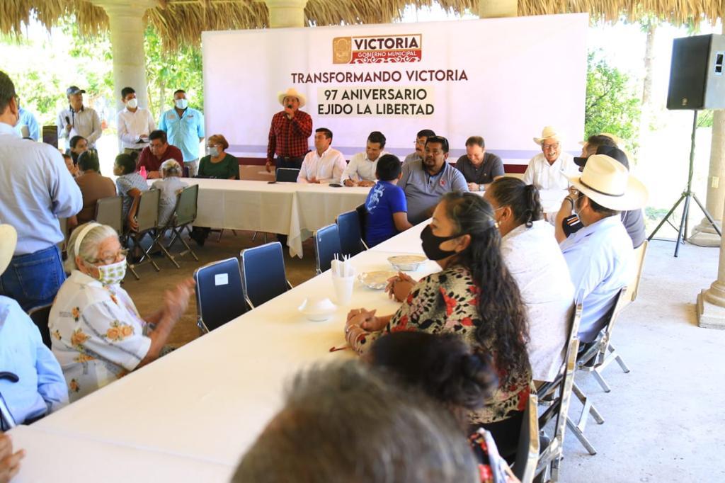 Cd. Victoria.- En su primer vista al sector rural y en el marco del 97 Aniversario del Ejido La Libertad, el alcalde de Victoria, Eduardo Gattás Báez recibió el respaldo incondicional de hombres, mujeres y jóvenes del campo para hacer equipo con su Gobierno.