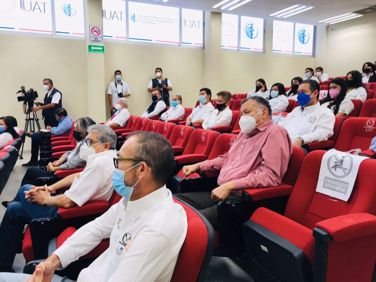 Más tarde se trasladó a la Unidad Académica Multidisciplinaria Matamoros-UAT, en donde se reunió con la comunidad estudiantil y docente de las carreras de enfermería, psicología y la licenciatura de seguridad, salud y medio ambiente, acompañado del director del plantel, Dr. Gustavo Gutiérrez Sánchez.