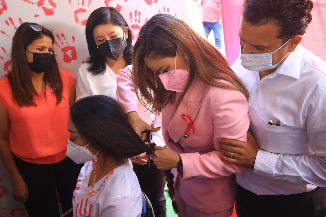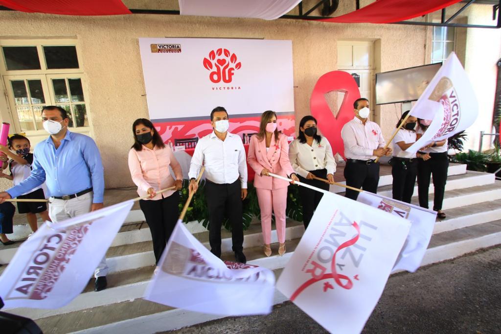 El gobierno de Victoria que preside el alcalde Eduardo Gattás Báez se sumó este jueves a la campaña de boteo, trenzando y prótesis Luz y Amor que puso en marcha la presidenta del Sistema DIF Victoria, Lucia Rodríguez de Gattás, en el marco del Día Internacional de Lucha contra el Cáncer de Mama.