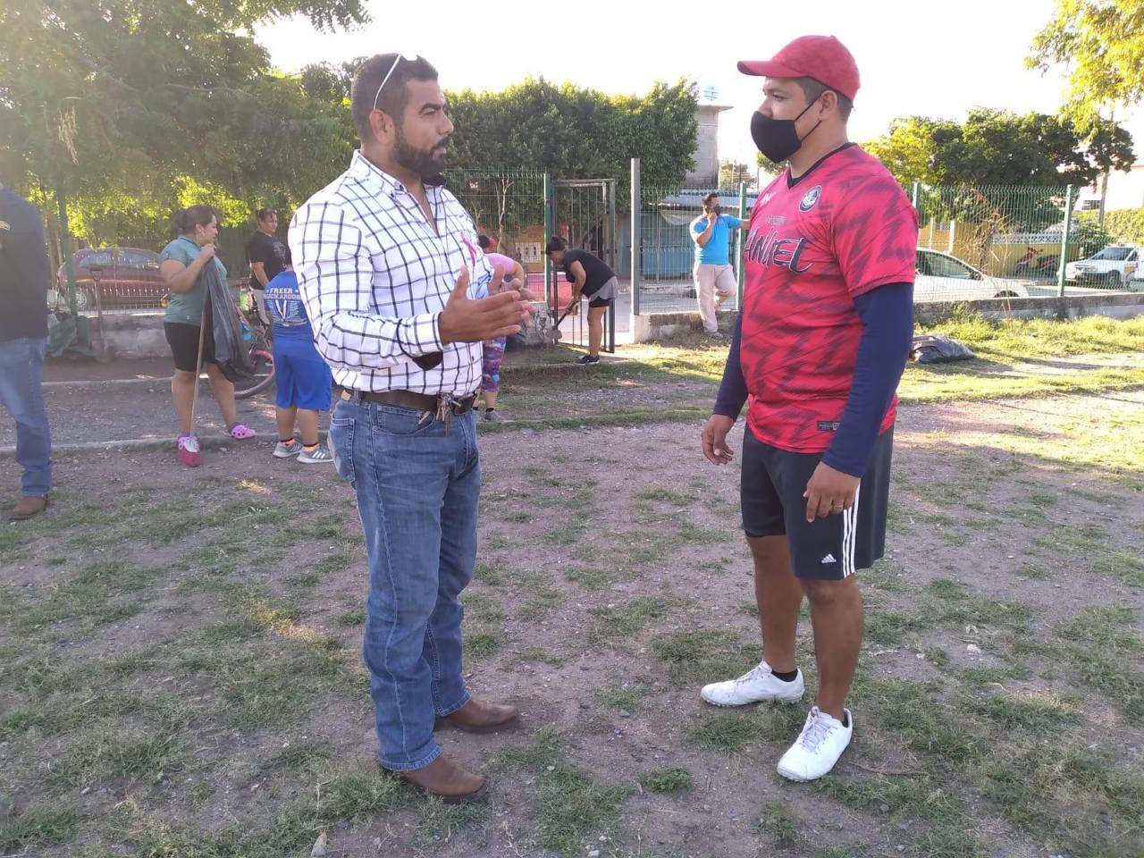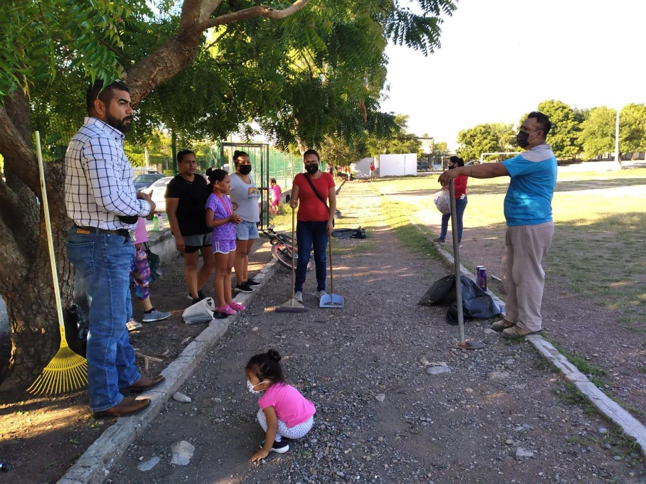 En su visita al parque deportivo de la colonia Satélite el jefe de Deportes del Municipio Carlos Pizaña constató esta acción donde padres de familia e hijos que entrenan fútbol en esa área de activación física, decidieron participar en los trabajos de limpieza iniciados por el municipio.