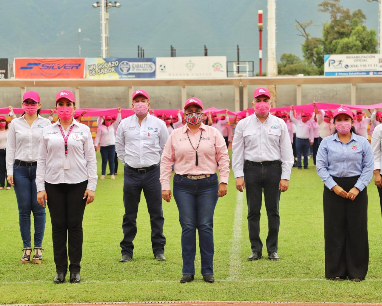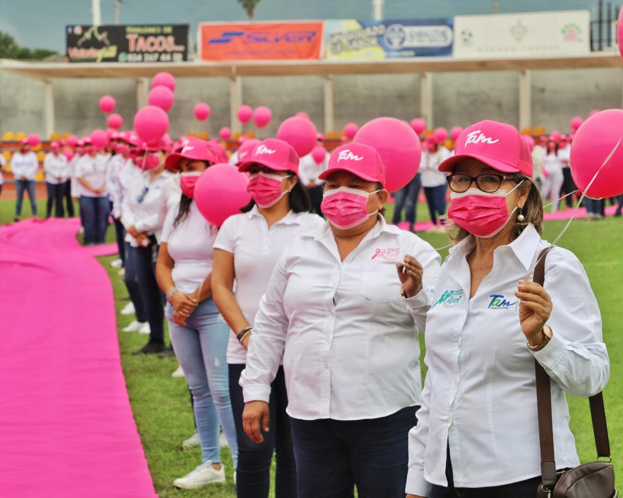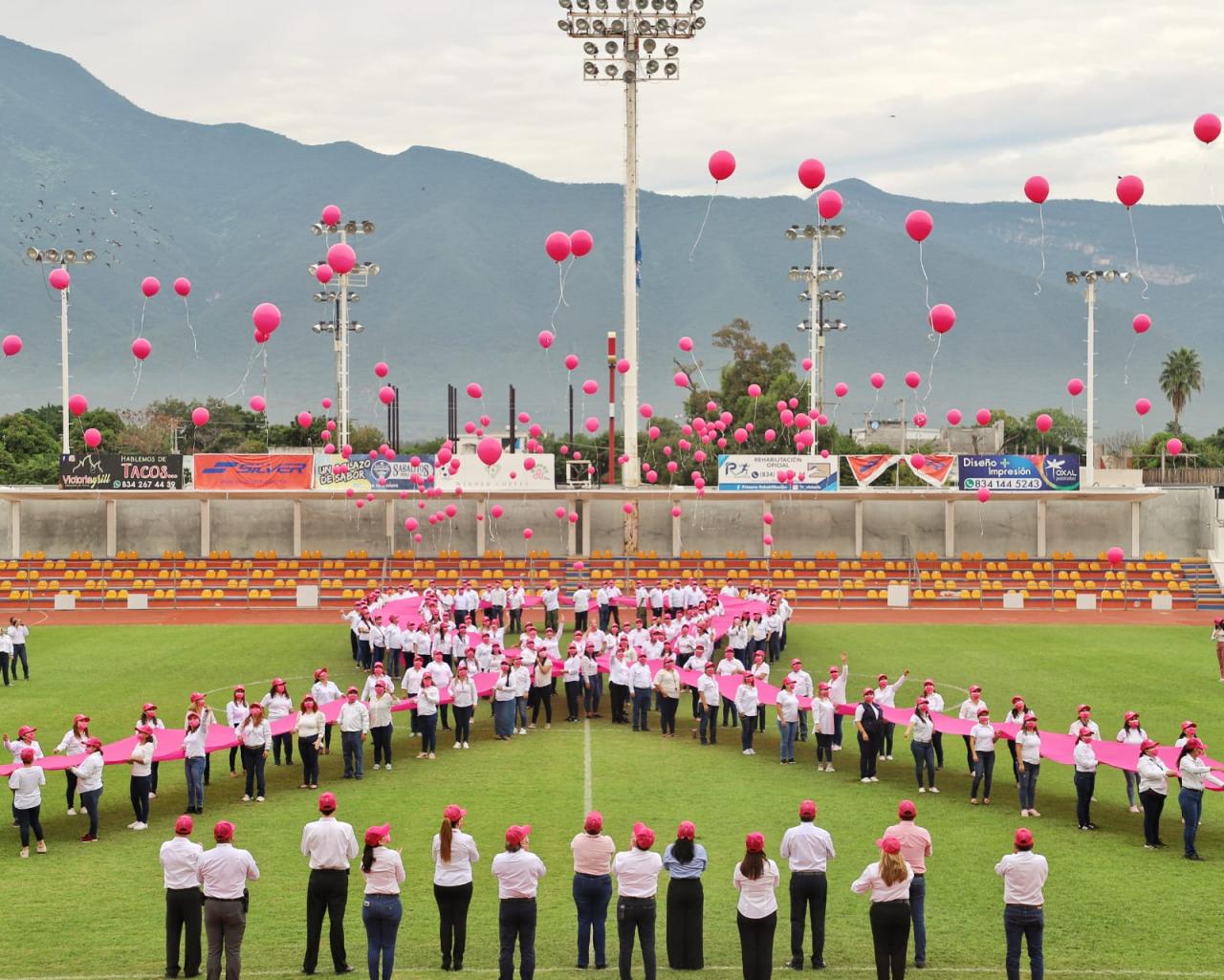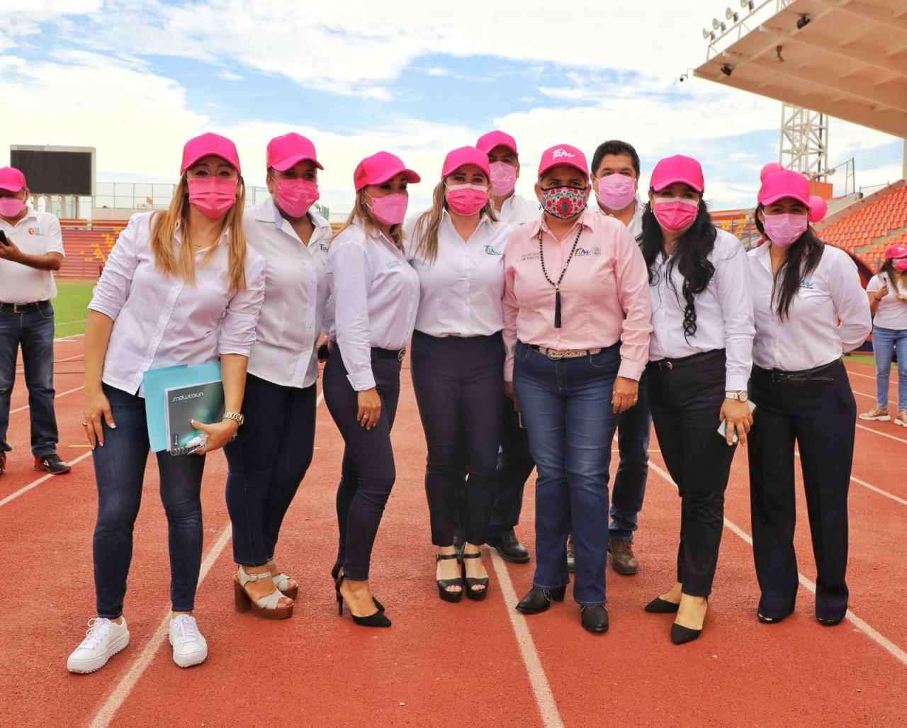 La titular de la SST presidió en esta ciudad capital las actividades de la campaña #ContraElCáncerYoActúo con la formación de un Lazo Rosa Humano para crear conciencia sobre la importancia de la prevención, el diagnóstico oportuno y el tratamiento adecuado del cáncer de mama.