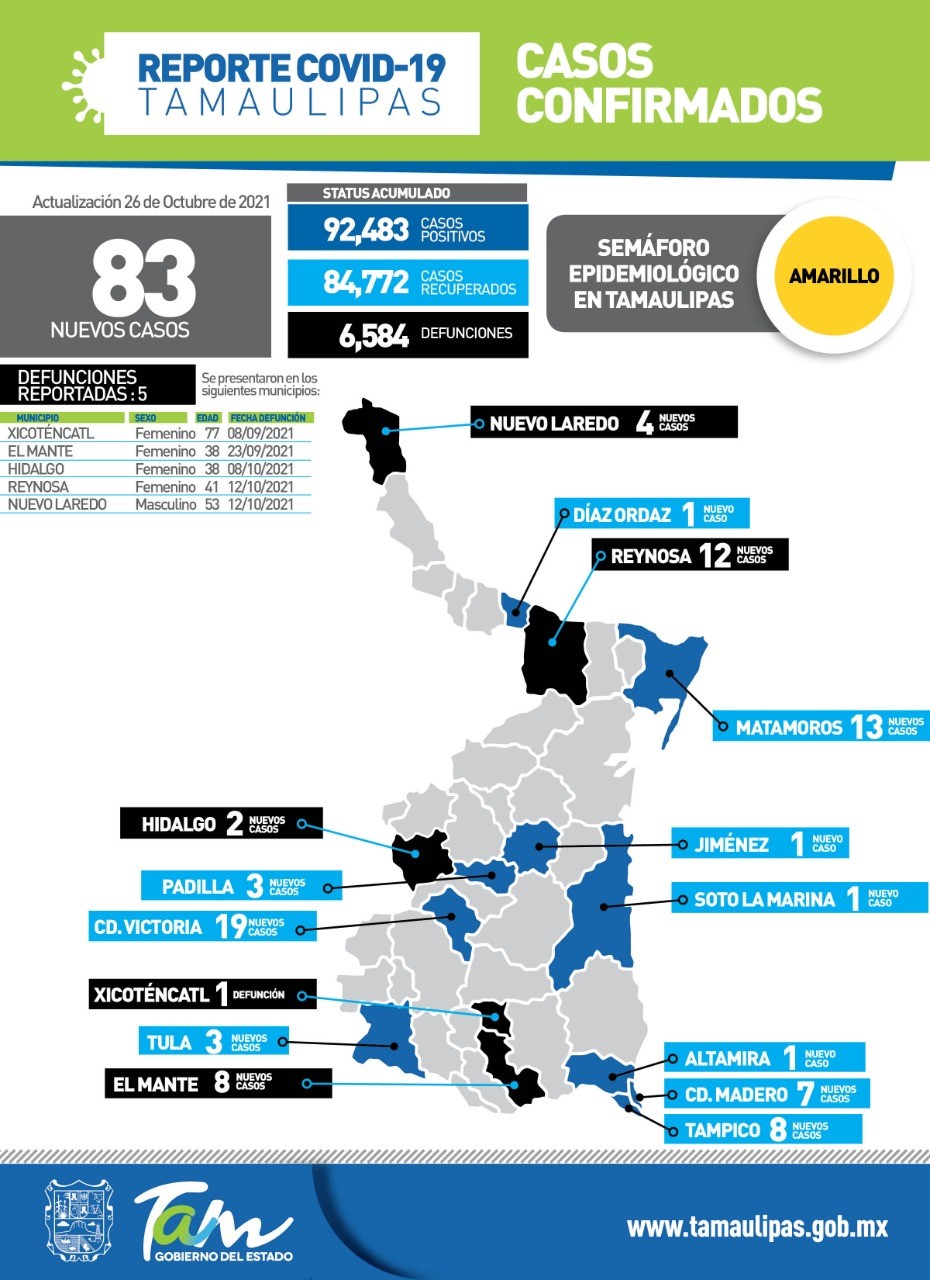 Al presentar su reporte diario, Molina Gamboa confirmó 83 pacientes positivos a la enfermedad y 5 fallecimientos por complicaciones graves, por lo que pidió seguir utilizando cubrebocas en todos los espacios públicos, lavarse las manos frecuentemente, mantener la sana distancia y evitar asistir a reuniones sociales en las que no se respeten las medidas de seguridad sanitaria.