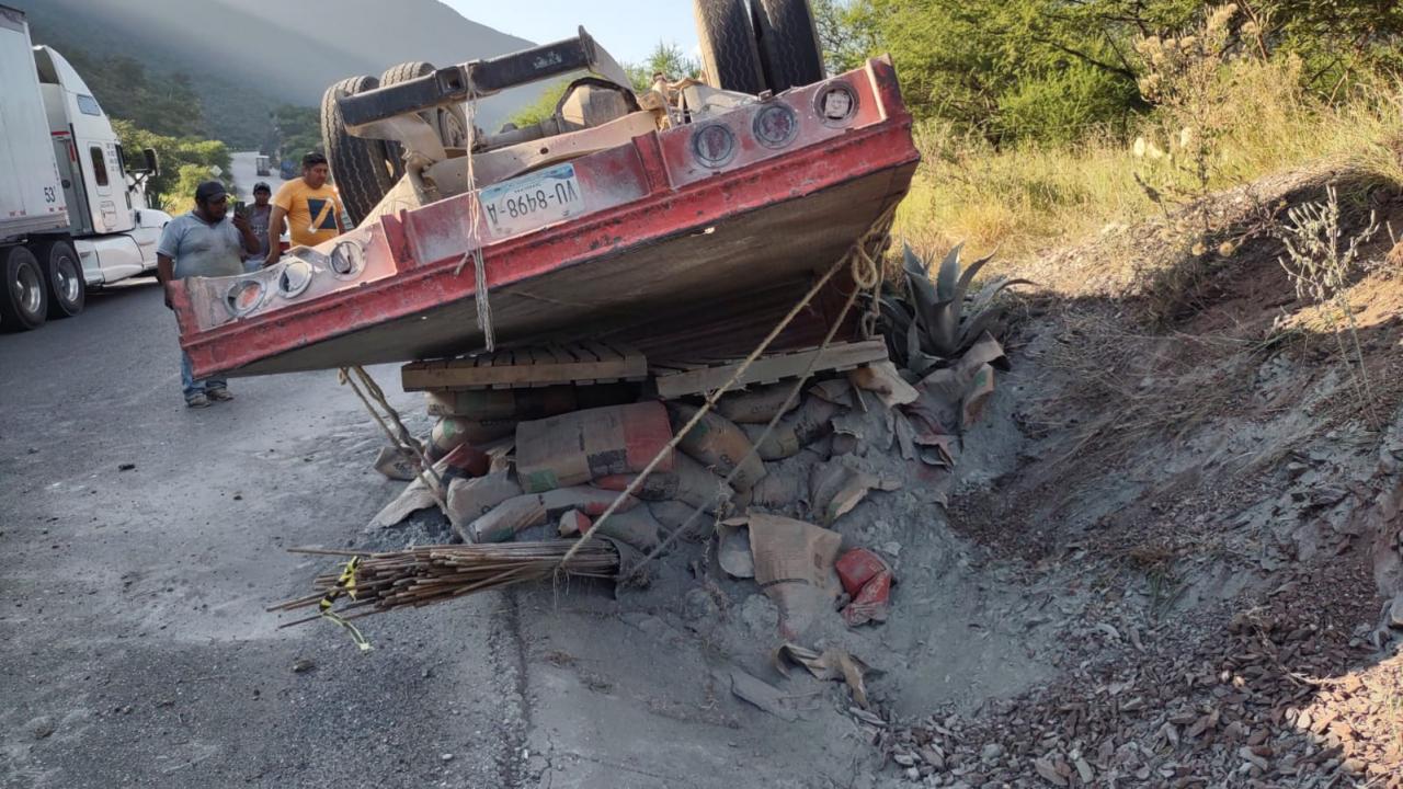 De acuerdo con la declaración del chofer, al ir circulando en sentido de norte a sur por el citado tramo carretero rumbo al Ejido Las Pilas donde entregaría cemento y varillas, la carga se le ladeó y terminó por volcar.