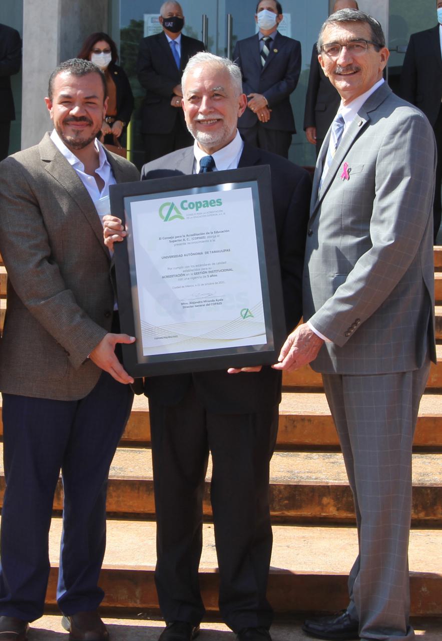 Con la presencia del Director General del COPAES y de la Red Iberoamericana para el Aseguramiento de la Calidad en la Educación Superior (RIACES), Mtro. Alejandro Miranda Ayala, y de la Presidenta del COMACE, Dra. Cynthia Patricia Ibarra González, el evento se llevó a cabo durante la Asamblea Universitaria realizada en las modalidades presencial y a distancia en el Centro de Excelencia del Campus Victoria.