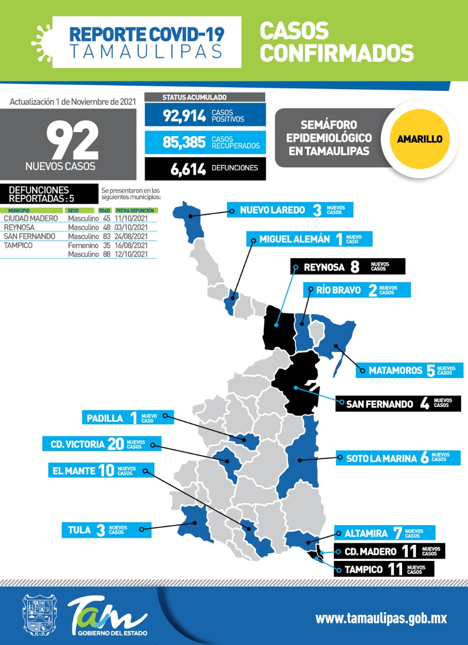 En su reporte diario, Molina Gamboa confirmó 92 nuevos casos de COVID-19 y 5 fallecimientos, por lo que pidió no bajar la guardia a fin de continuar con la tendencia descendente y evitar nuevos picos o rebrotes de la enfermedad.