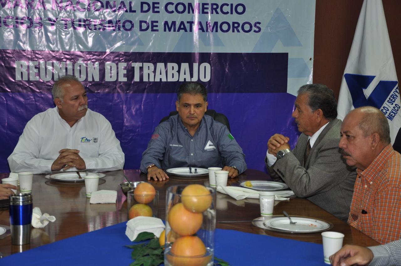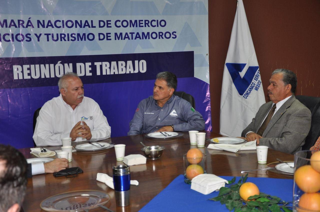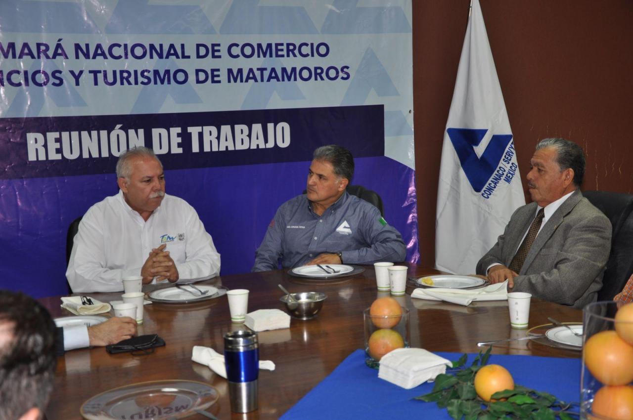 Matamoros, Tamaulipas.- Luego de los hechos violentos que se registraron recientemente en la ciudad de Matamoros, el secretario general de gobierno, César Verástegui Ostos y el presidente de Federación de la Cámara Nacional de Comercio (FECANACO), Julio Almanza Armas junto con empresarios sostuvieron una reunión en la que se acordó trabajar en conjunto, gobierno sociedad para mantener la seguridad de la región.