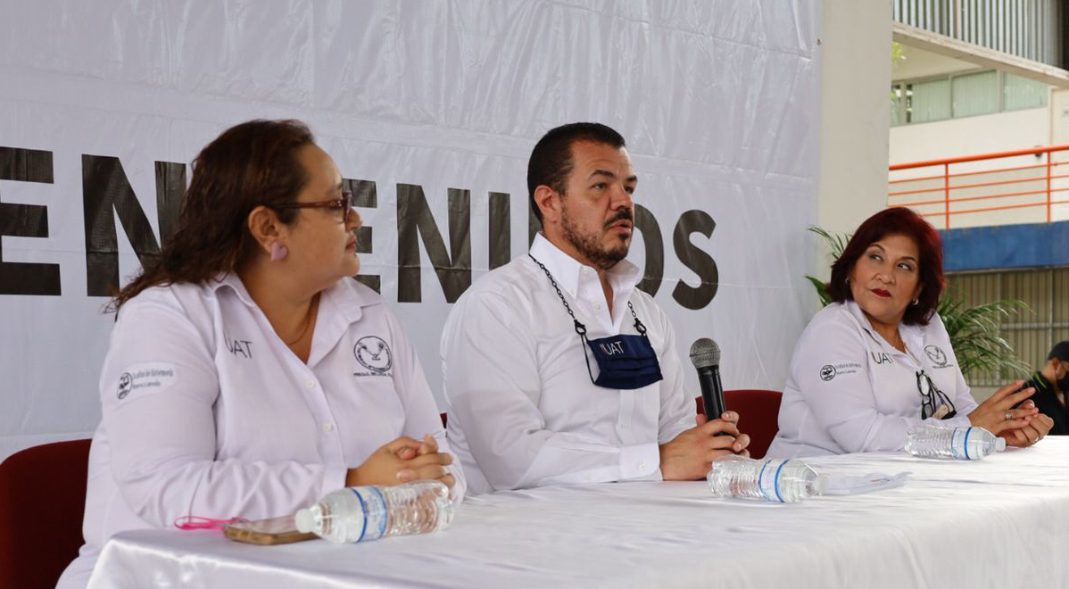 La Facultad de Enfermería Nuevo Laredo (FENL) recibió este miércoles 3 de noviembre la visita del contador público Guillermo Mendoza Cavazos, quien como Rector Electo de la Universidad Autónoma de Tamaulipas (UAT) para el período 2022-2025, reanudó en esta ciudad fronteriza la gira de trabajo que ha emprendido para exponer su proyecto y dialogar con los universitarios de todas las sedes de la máxima casa de estudios en el estado.