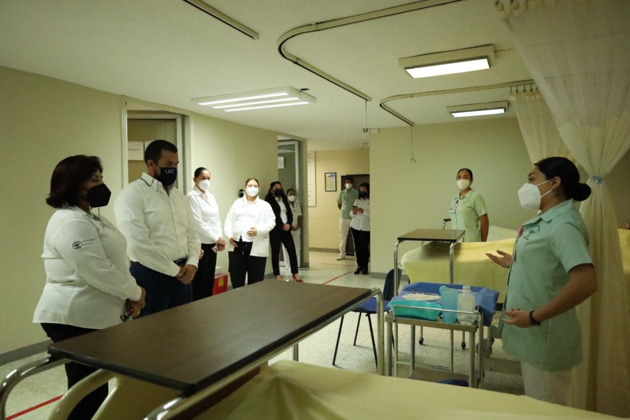 Como parte de su visita a la Facultad de Enfermería de Nuevo Laredo, el contador público Guillermo Mendoza Cavazos hizo un recorrido de supervisión por las instalaciones para la práctica y enseñanza clínica.