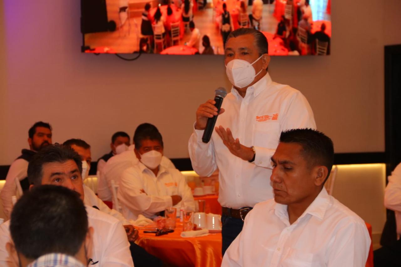 En este encuentro donde estuvieron los integrantes del Comité ejecutivo de la Sección 30, participó el Profesor Jorge Miguel Cota del Comité Ejecutivo Nacional quien reconoció la labor titánica de los maestros en tiempo de pandemia.