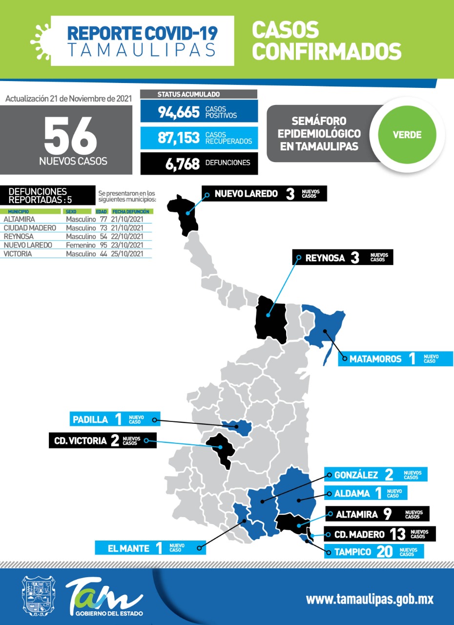 CIUDAD VICTORIA, Tamaulipas.- Luego de advertir que la emergencia sanitaria por COVID-19 continúa activa y que de no reforzar las medidas de prevención ya conocidas podría derivar en una cuarta ola de contagios, la secretaria de Salud de Tamaulipas Gloria Molina Gamboa pidió a la población no bajar la guardia y atender las recomendaciones emitidas por el gobierno del Estado para seguir enfrentando la pandemia.